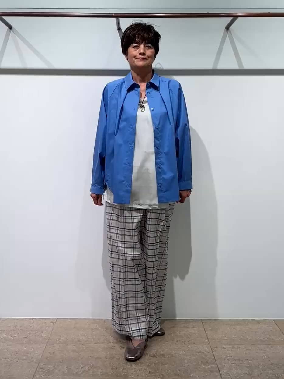 ハリ感のあるシャツブラウス。サイドのタックで膨らみのあるシルエットになっており、前を開けて羽織としても着られます。