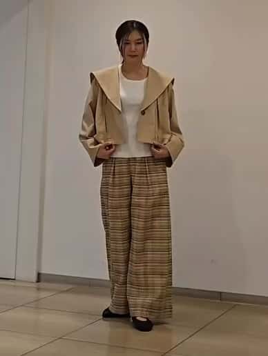 ■ コットンシルクチェックワイドパンツ(ベージュ系・2サイズ着用)