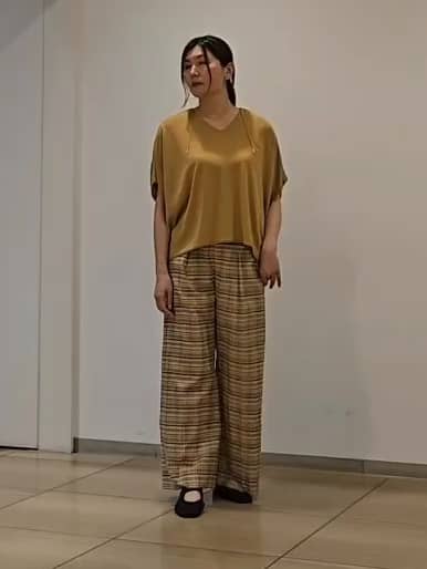 ■ コットンシルクチェックパンツ(ベージュ系・2サイズ着用)