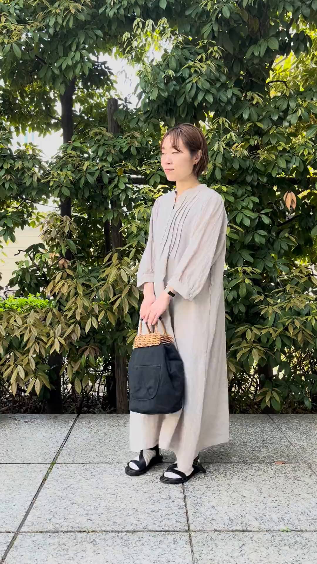 ロワズィールの定番素材グランジリネンのワンピース。淡いピンクが大人っぽく、黒小物とも好相性。シンプルながらにフロントディテールやシルエットにこだわったヴィンテージライクな1枚です。