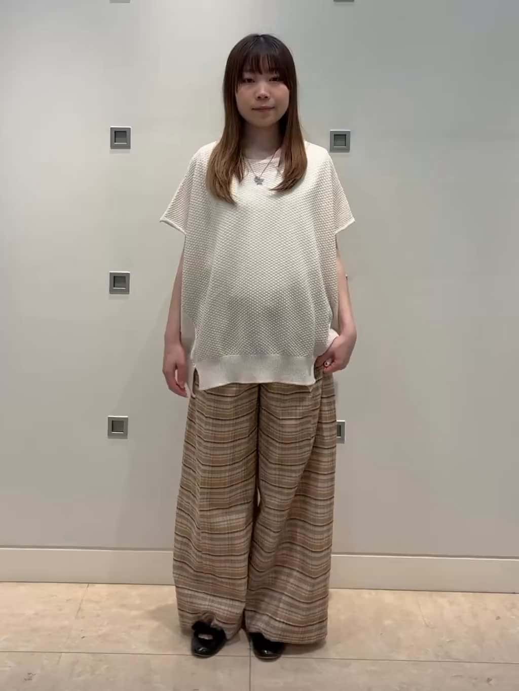 涼しく快適な着心地のニットにオーガンジー素材のワイドパンツを