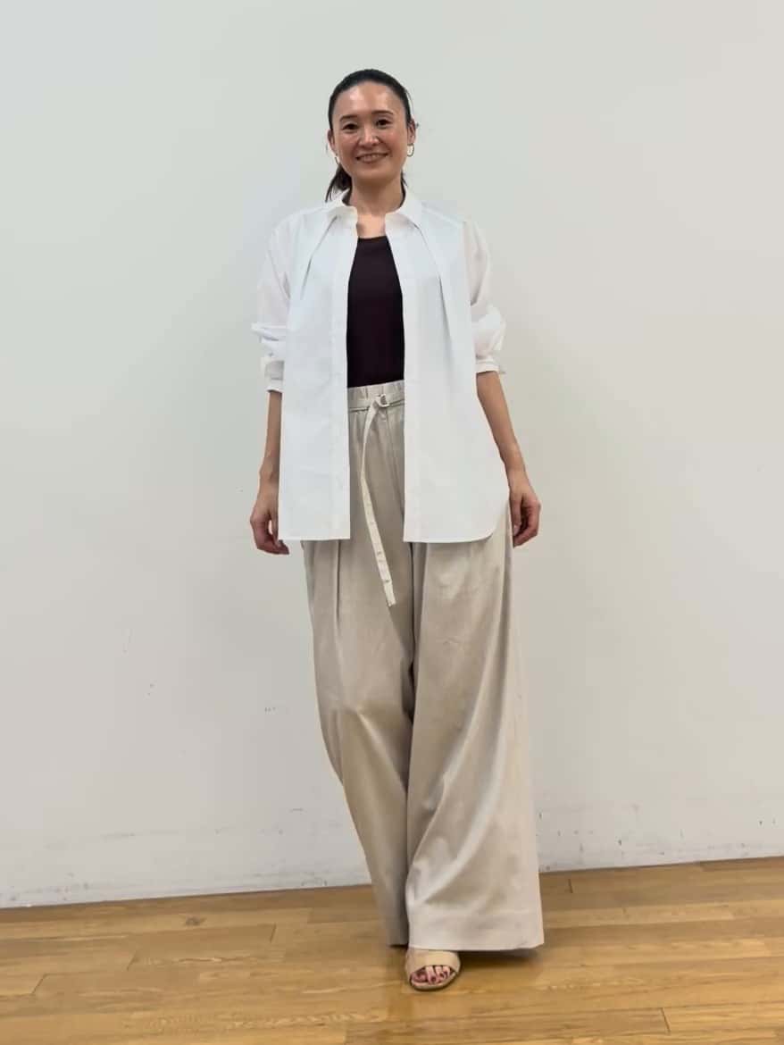 ◾️ドライリネンストレッチパンツ(ベージュ・1サイズ着用)
