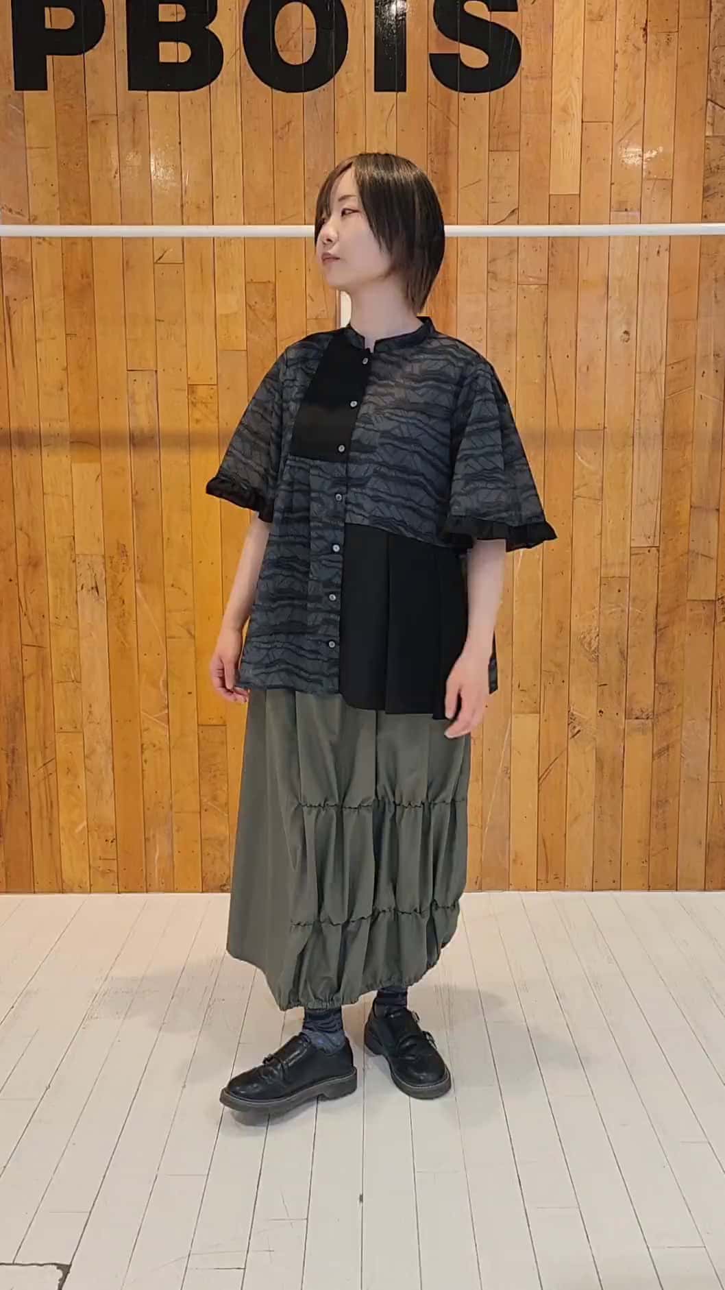 着用感 : Aラインのシルエットと袖のフリルが可愛いブラウス。風通しが良いので夏のおでかけにオススメです。