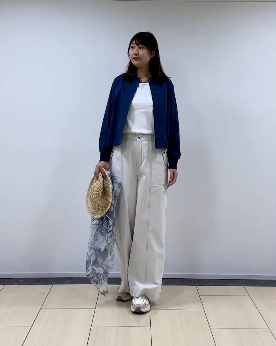 着用感:ウエストがゴムで、ナチュラルな風合いなワイドパンツ。キナリですが、下着が透ける心配なくお使いできます。きれいめカジュアルのパンツに最適なアイテムです。