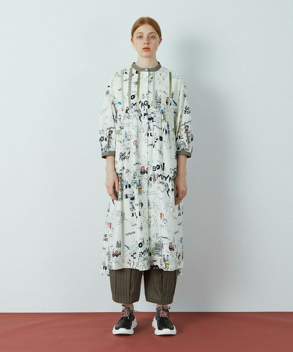 コレクションテーマの「旅」をモチーフにしたイラストがプリントされたシャツワンピースをご紹介します。