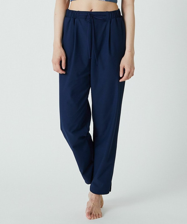 くすみピンクの色味がかわいいトップスはバックスタイルも目を惹くデザインでコーディネートのアクセントに。ゆったりシルエットのパンツはリラックスタイムにもオススメです。