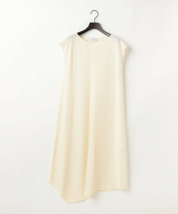 身頃はアシンメトリー切り替えており、裾のシルエットが