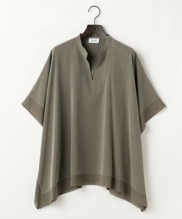 ワッシャーサテンのポンチョ風ブラウスとイージーテーパードパンツのセットアップをご紹介します。