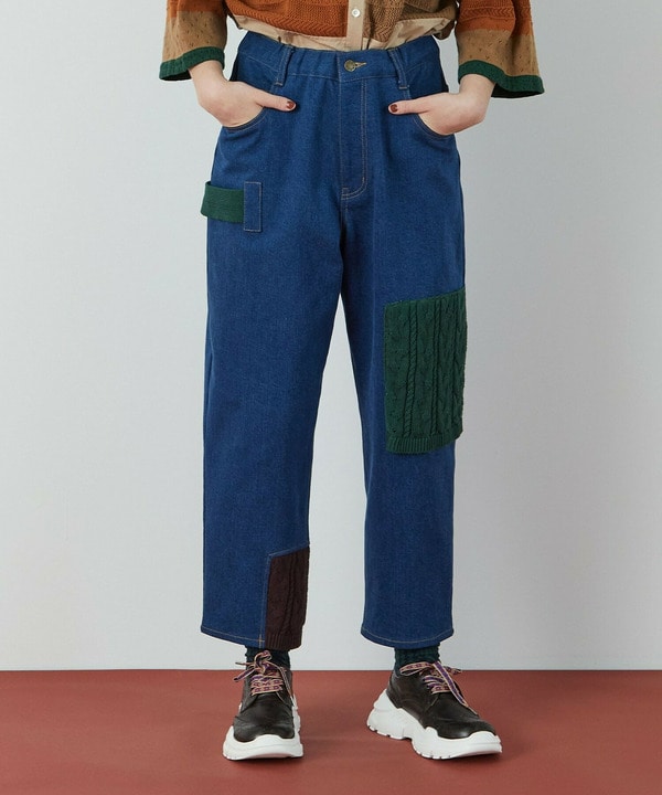 ボトムのデニムもニットとのドッキングデザインです。