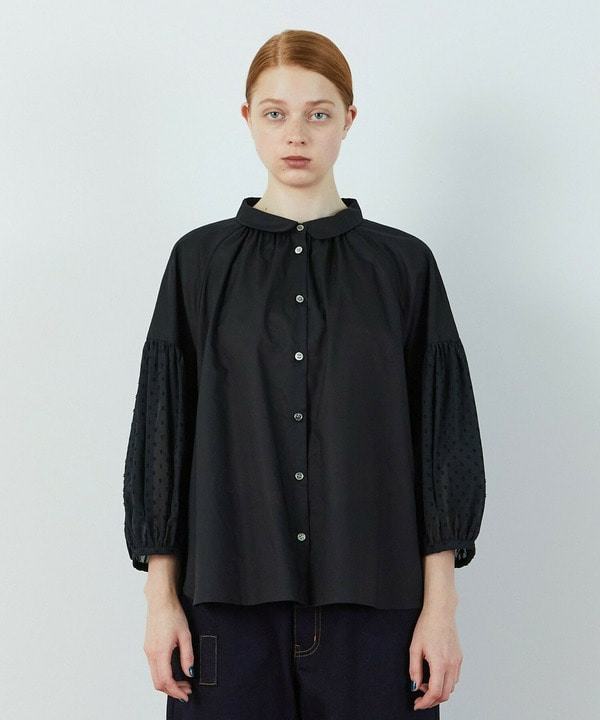 ゆったりとした身頃に衿からギャザーを入れた、軽やかなシルエットのブラウスを着ました。