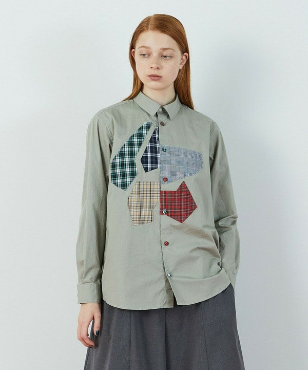 くるみボタンやアップリケなどフラボアらしいシャツを着ました。
