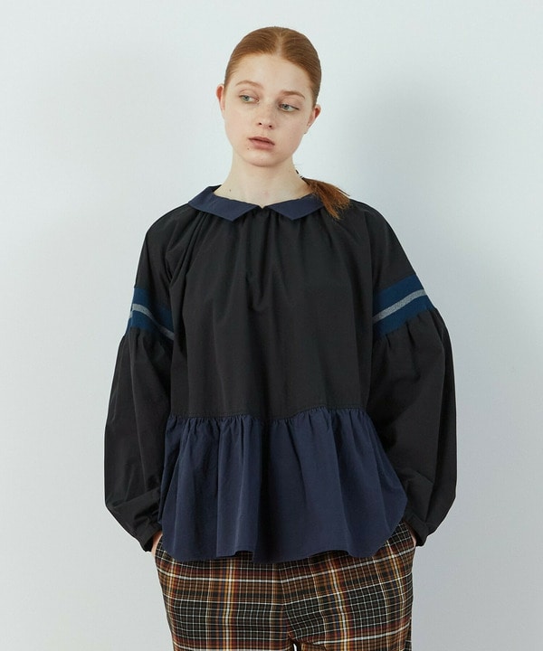 ハリがある生地を使ったプルオーバー型のブラウスは、ペプラムブラウスの様なかわいらしい形。