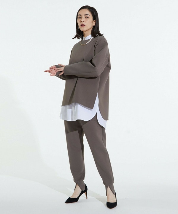 トップスは大胆な前後差のあるヘムラインとサイドスリットで
