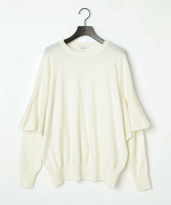 1枚で着映えするフリル付き長袖のニットプルオーバーに