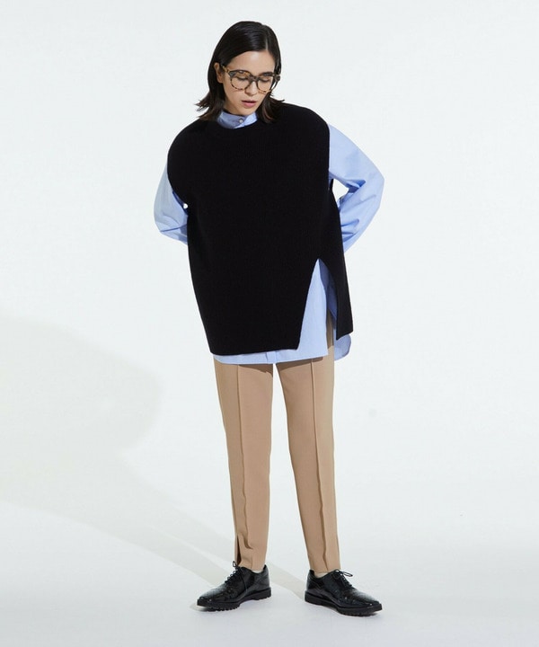 シンプルなパンツやスカートとも相性のよいミドルレングスなので