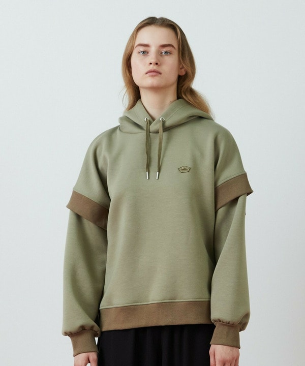 インナーには暖かい素材のフーディーを合わせて、ストリートっぽく着てみました。