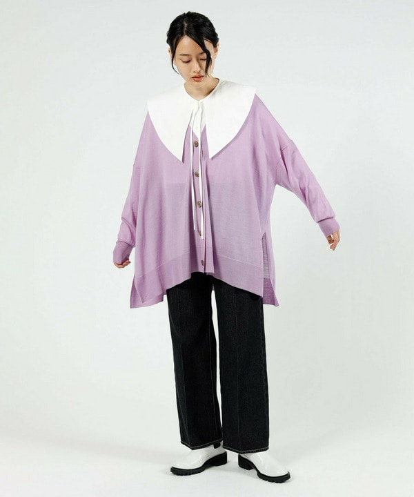 カーディガンと合わせて、襟を出して着ていただくのがおすすめ。