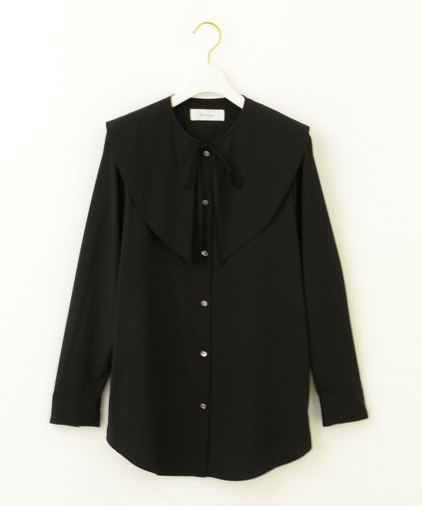 大きな衿がトレンド感のあるブラウス。デニムにインして
