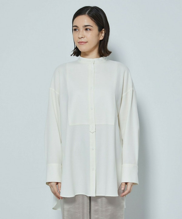ブラウスは長めのウールブラウスでドレスシャツデザインです。