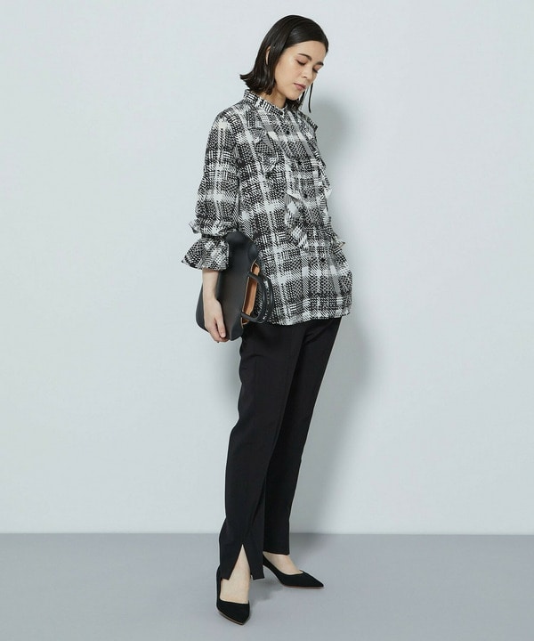 華やかなチェックブラウスにいつもならきれい目な