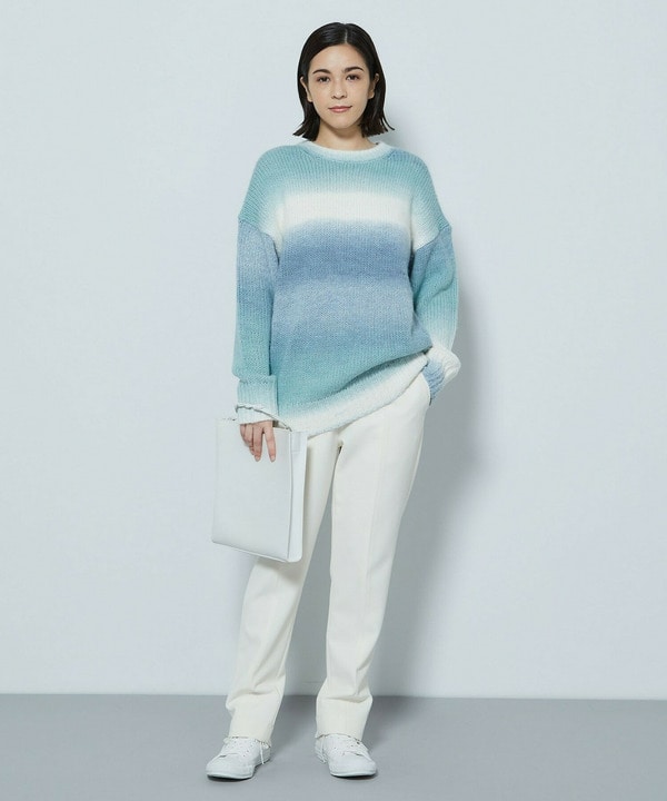 綺麗な色合いのボーダー柄が目を引くニット。