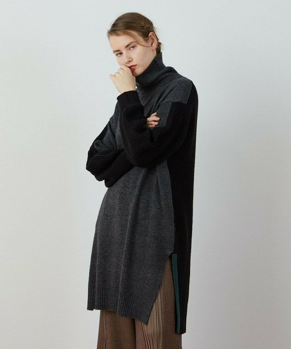 チュニック丈のハイネックニットを大人っぽいコーデで着ました。