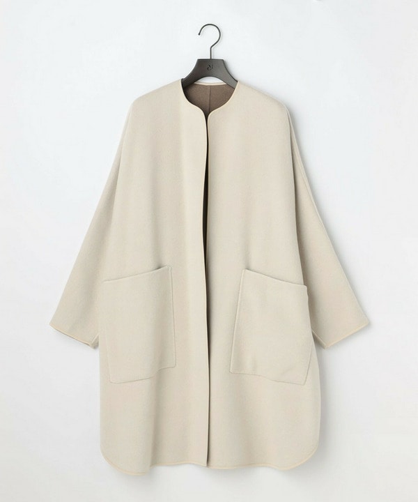 リバーシブル仕立てのケープデザインのコート。