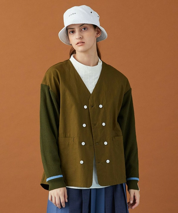 インナーにはノーカラーや胸元のタックが特徴の白シャツを合わせて、マリンスタイルを意識しました。