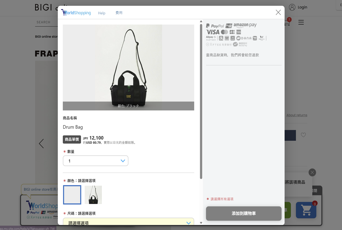 点击“添加到购物车”的“WorldShopping旗帜广告,只有在您国家可以购买的商品才会出现在购物车中,继续购买您喜欢的商品。 →探索WorldShopping指南,了解更多详情。