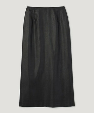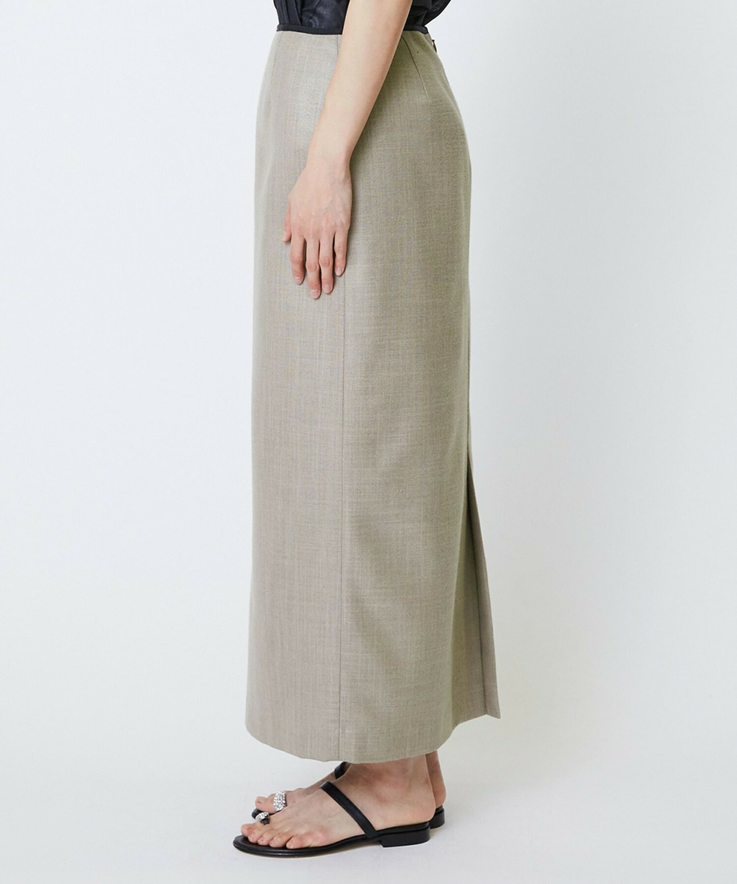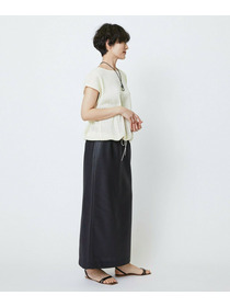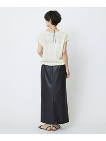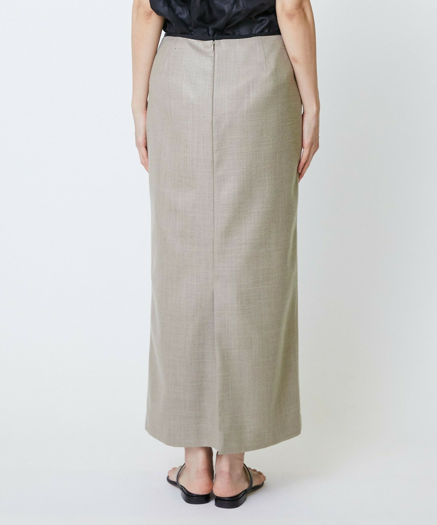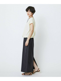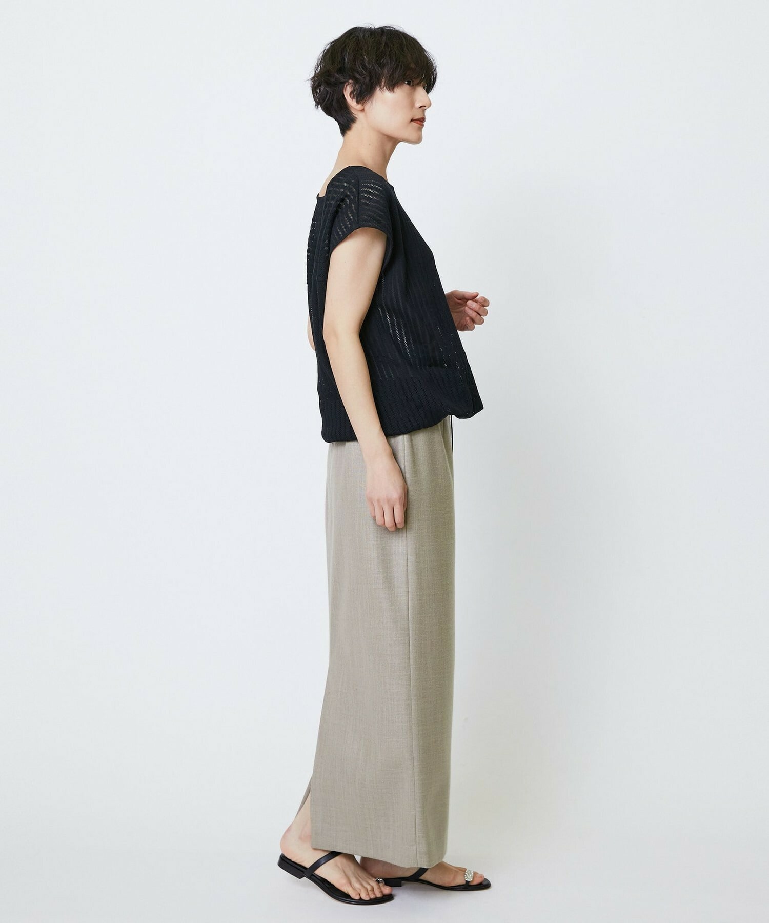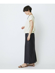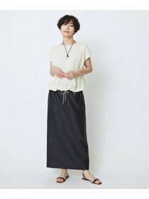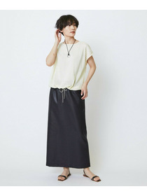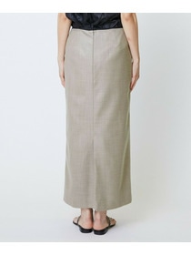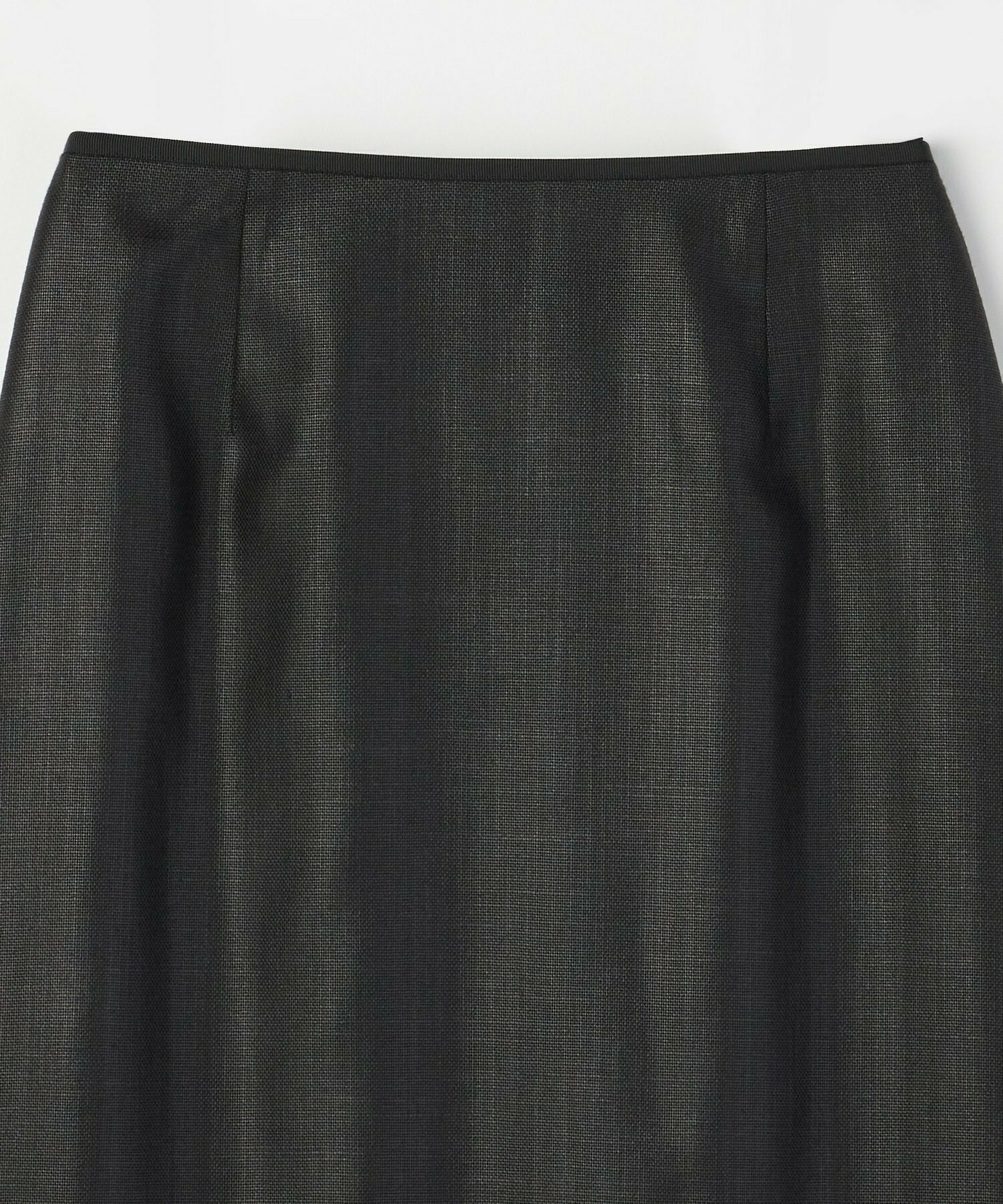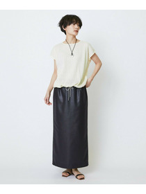 ラッセルメッシュストライプのトップスと好相性のシンプルなマキシタイトスカート。ウエストベルトを異素材にしただけのシンプルなデザイン。なんといっても素材感が特徴。ナチュラル感がありながら大人な表情のあるとても新鮮な素材です。