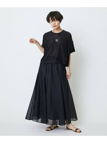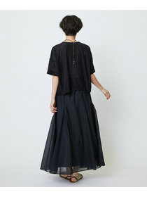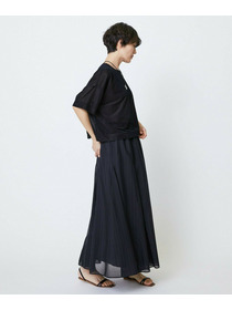 三角切り替えを入れて腰回りはすっきり、裾はひらひらとボリューム感を出したスカート。切り替えで柄がランダムに見えるのもデザインポイントです。シンプルで着やすい形ですが着映えします。夏にカットソーとサッと合わせて涼しく着られます。同素材のブラウスとセットアップでも着ていただけます。