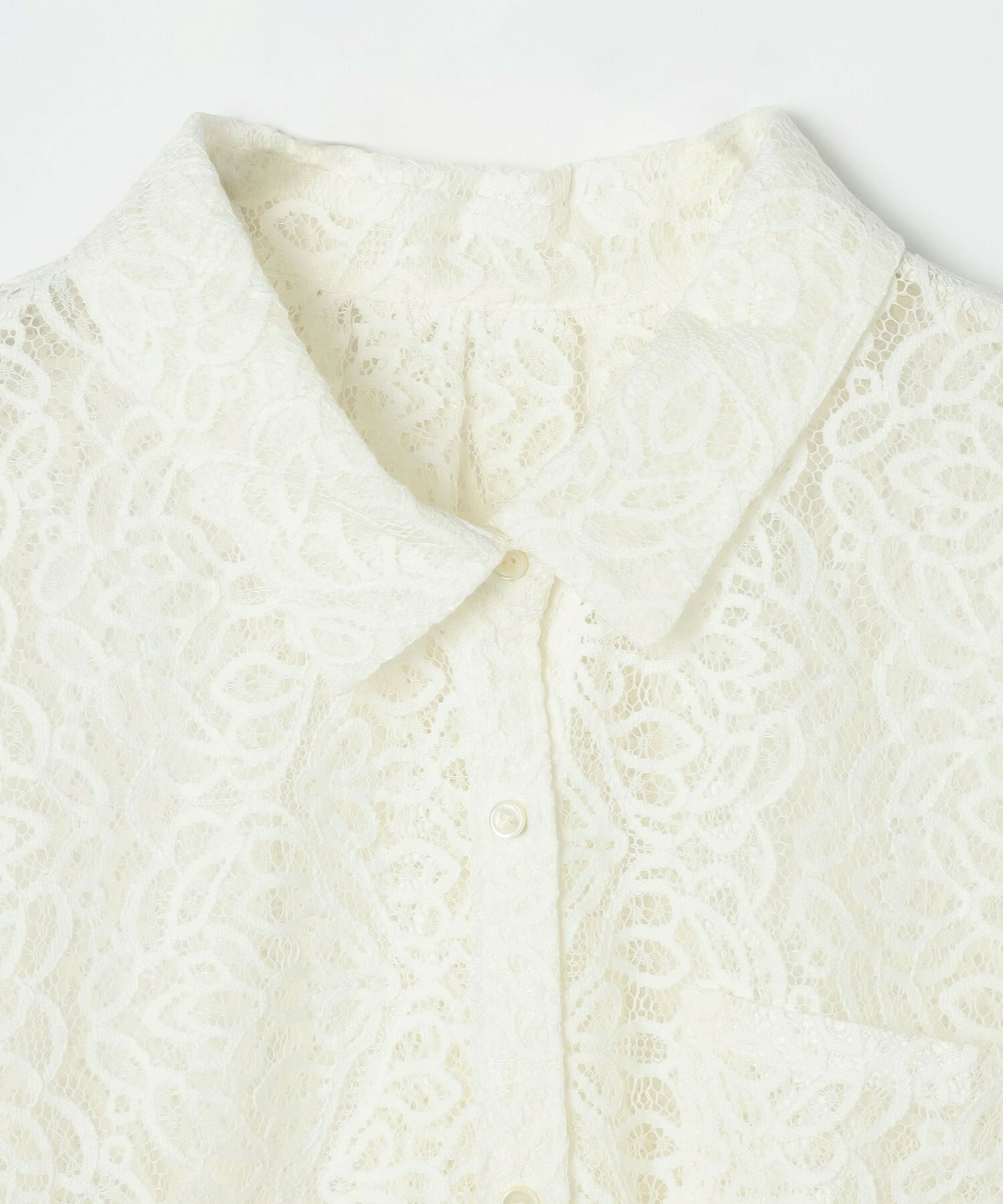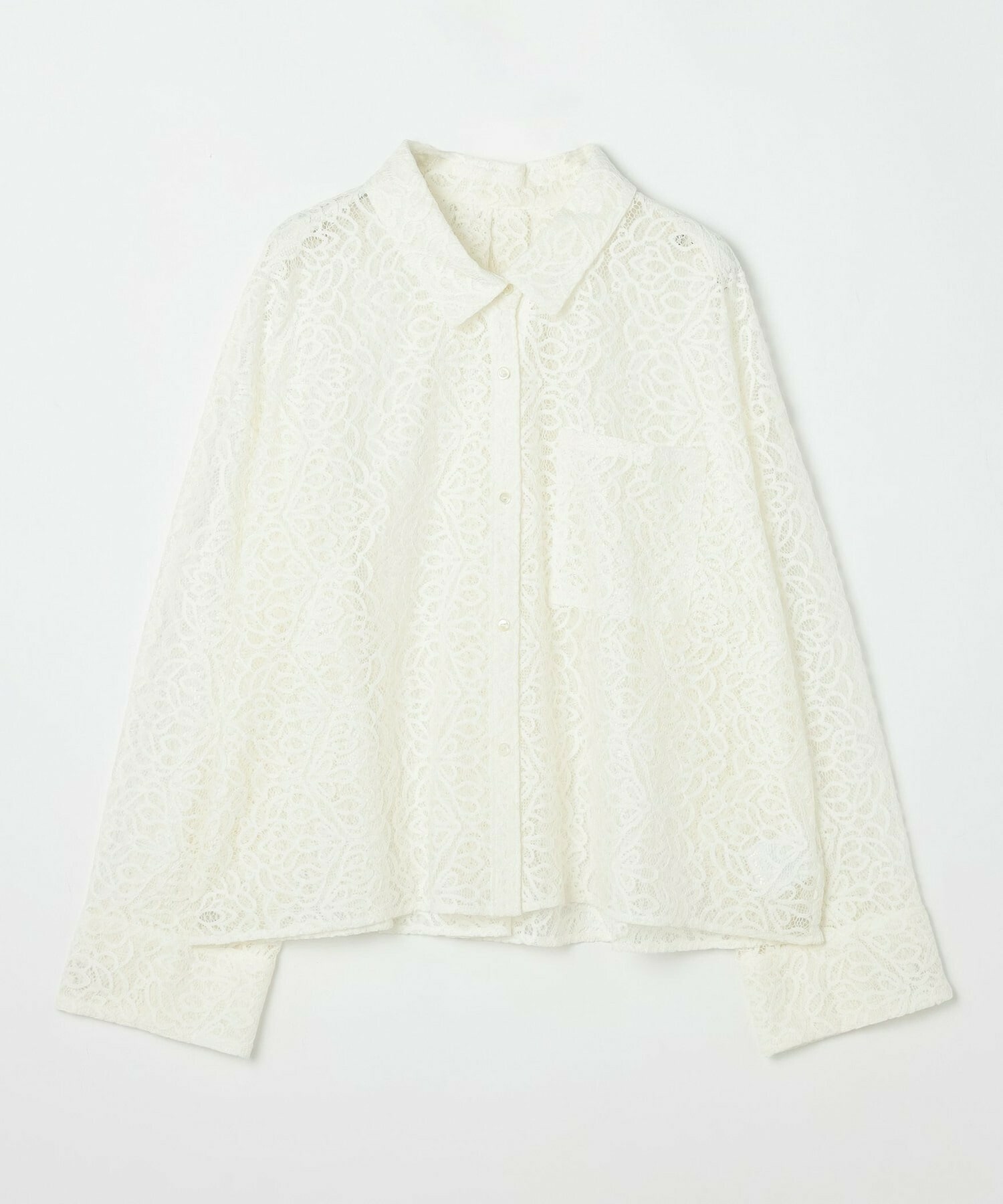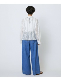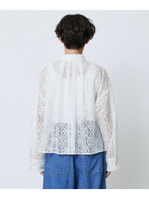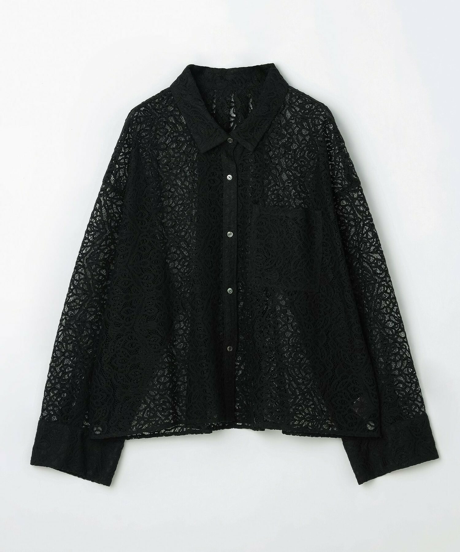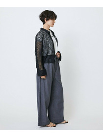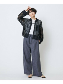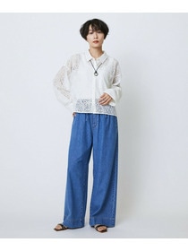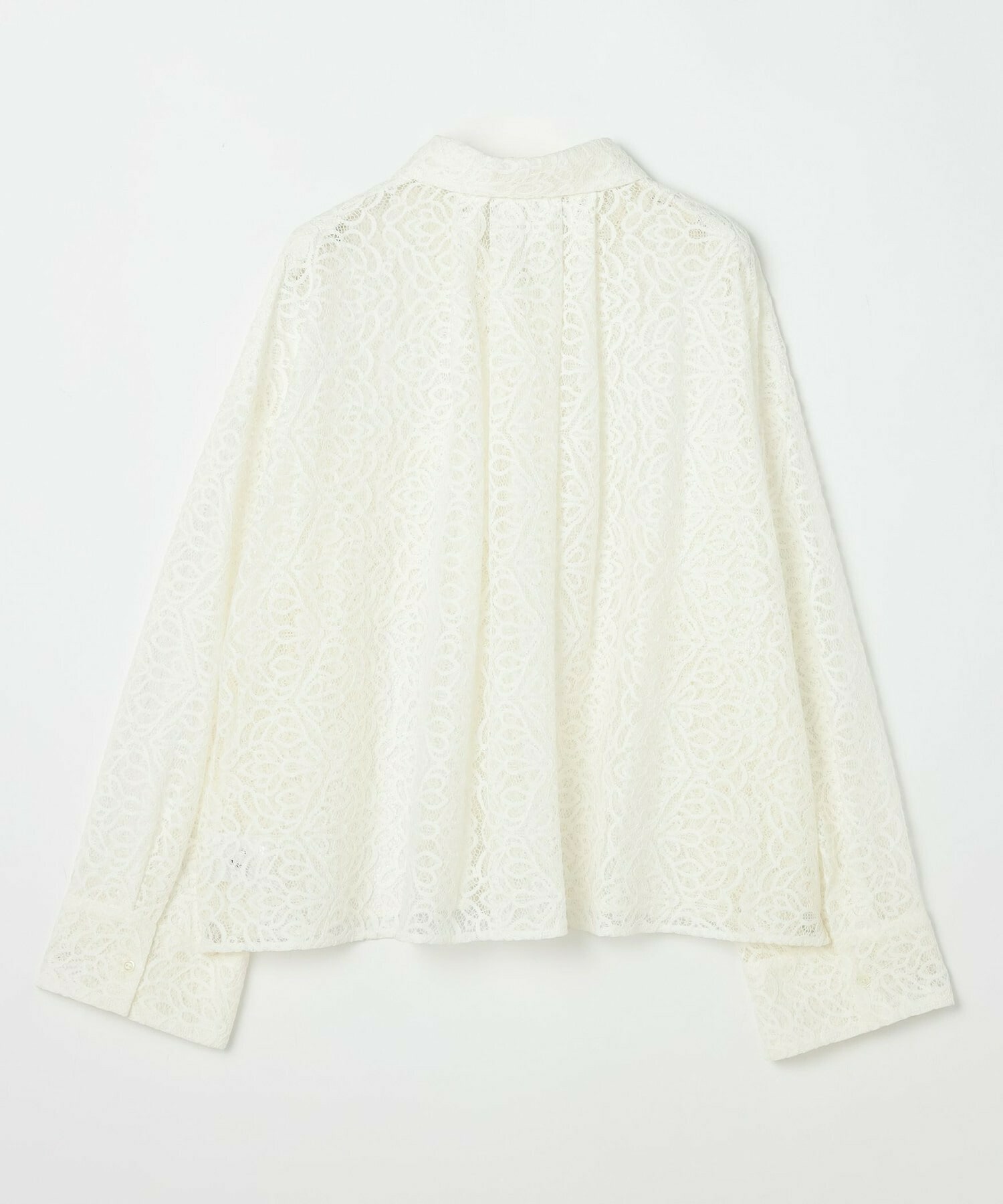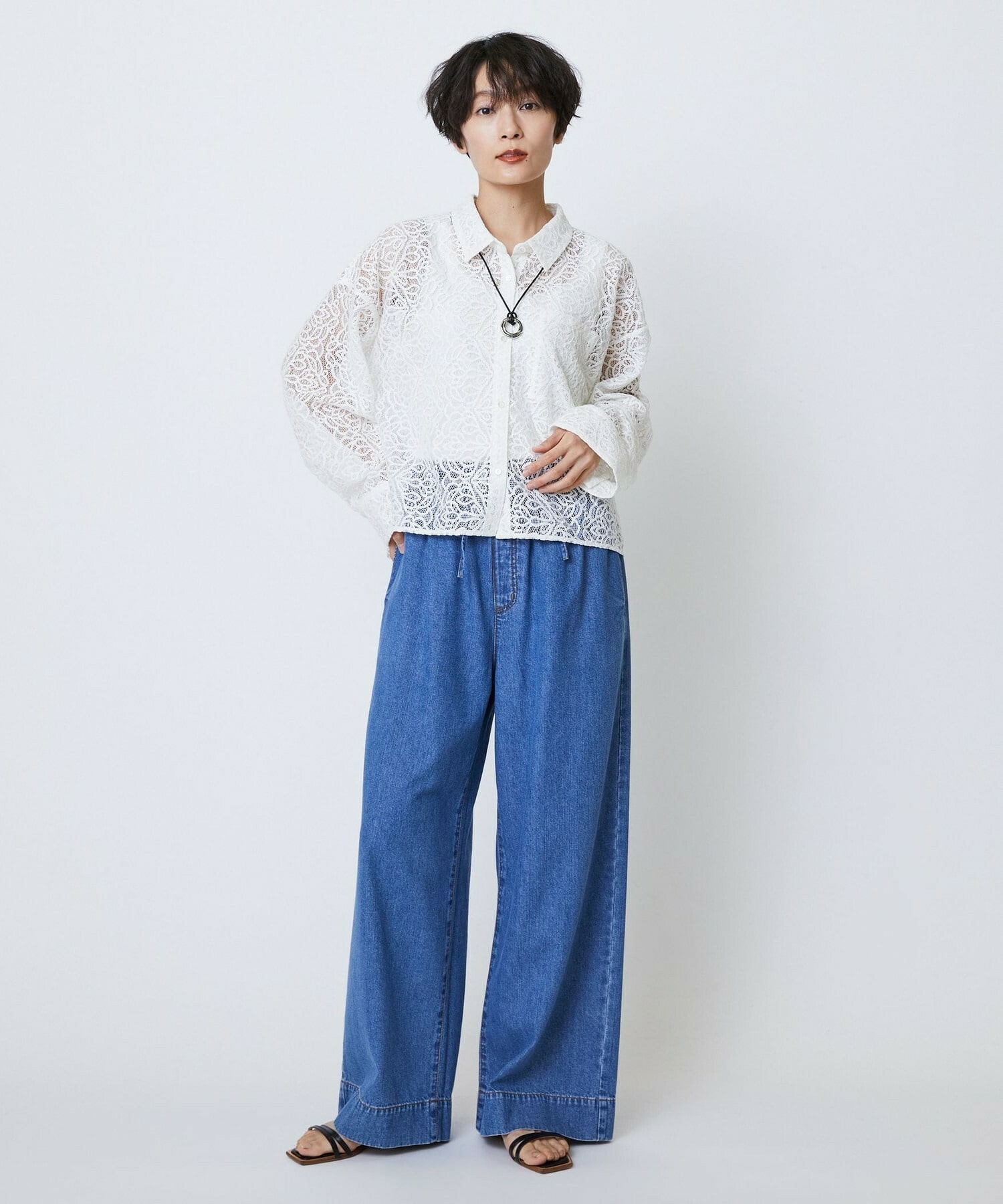 レースシャツを短丈にしてカジュアル感を出し、バランスを取りやすくしています。後身はタック仕様で少し広がるシルエット。短丈なのでワイドパンツとバランス◎です。涼しく着られるので真夏の羽織としても重宝します。