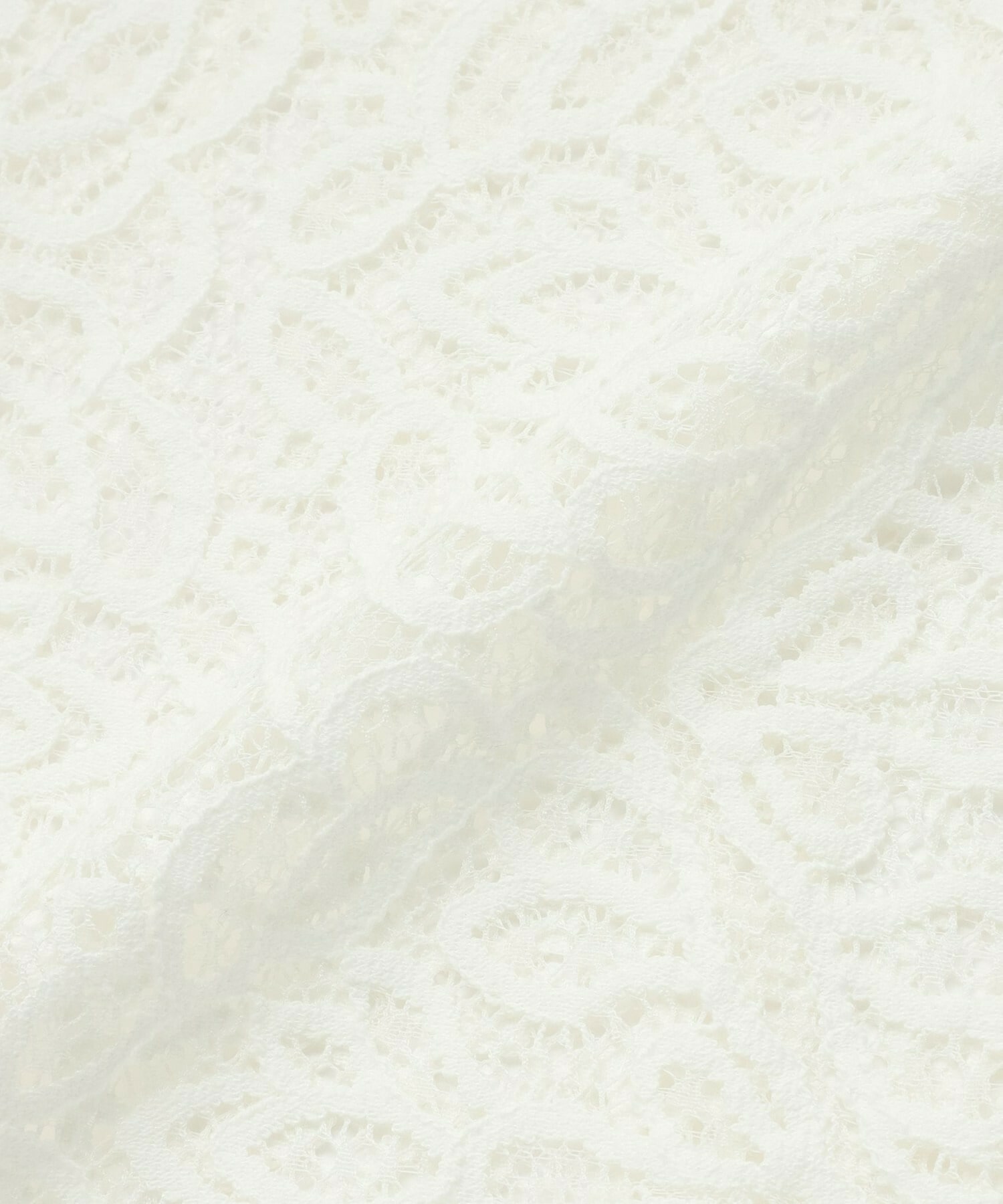 甘くなりすぎない上品な柄のレース。コットンベースでナチュラル感もありつつ、ポリエステル混でしゃきっとしたキレイ目な表情を持ち合わせています。