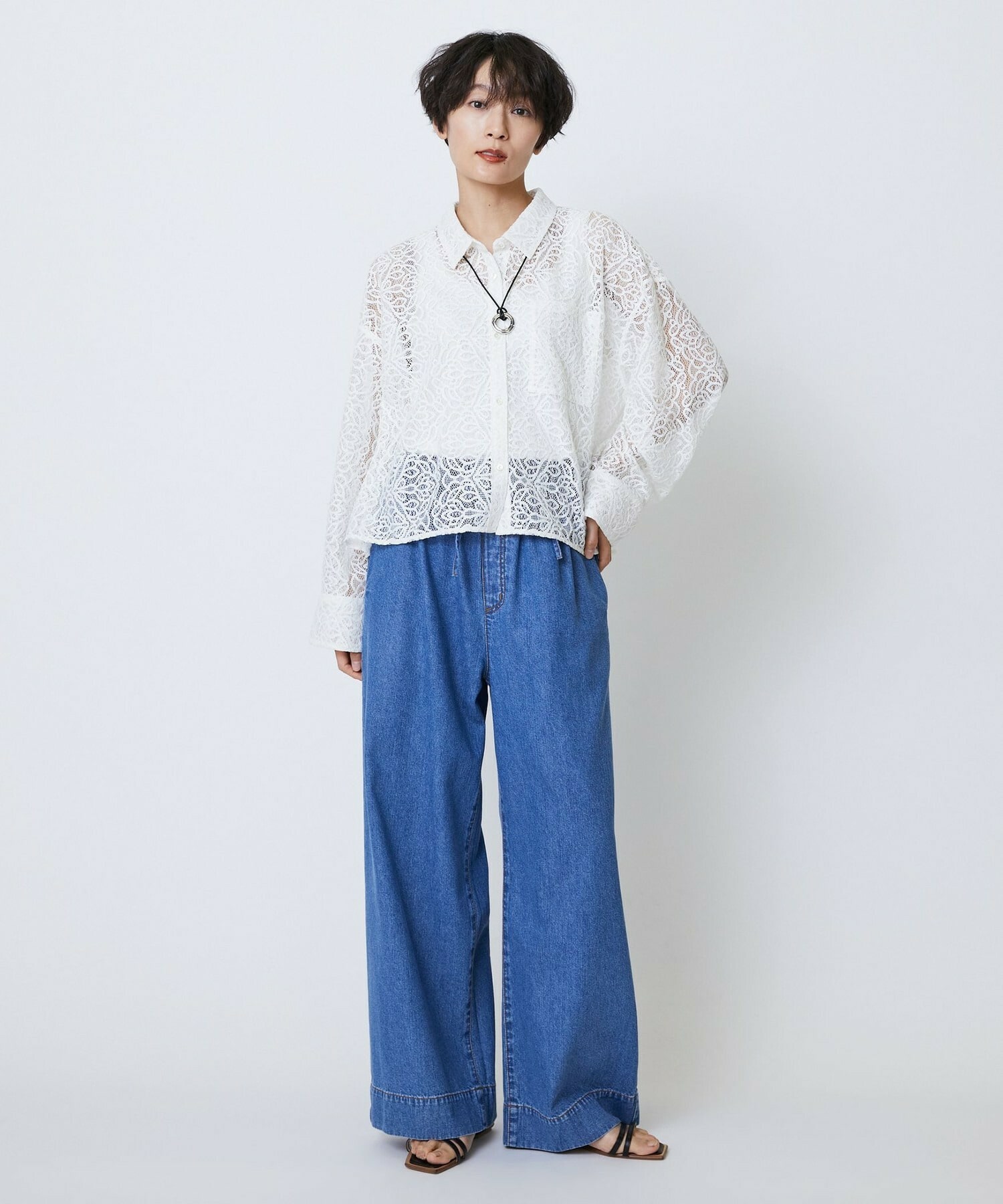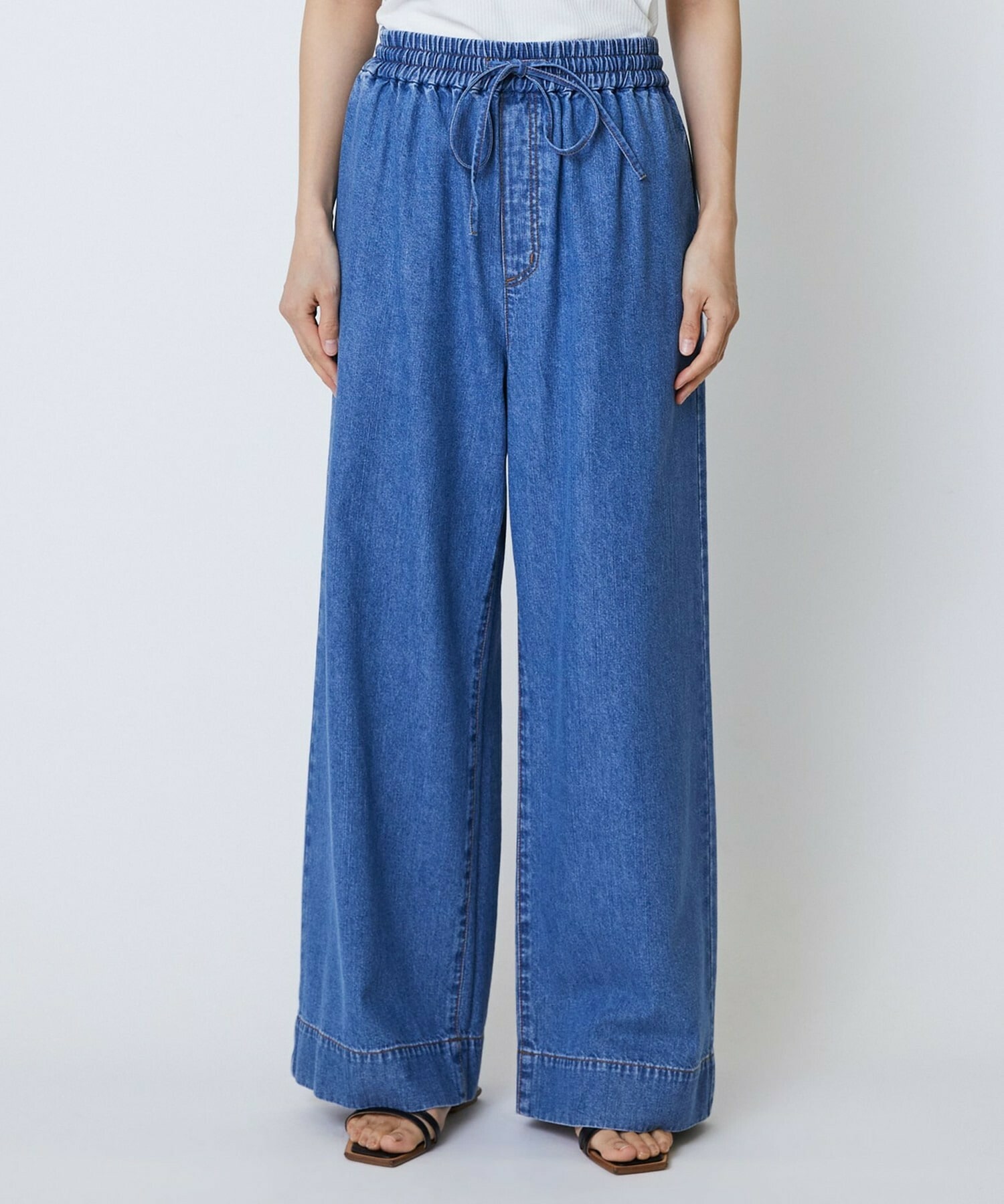 薄手で少し落ち感のあるレーヨン混のデニム素材。柔らかい手触りで履き心地のいい素材です。