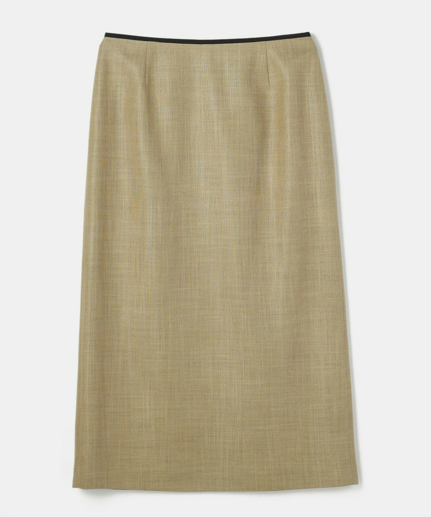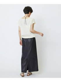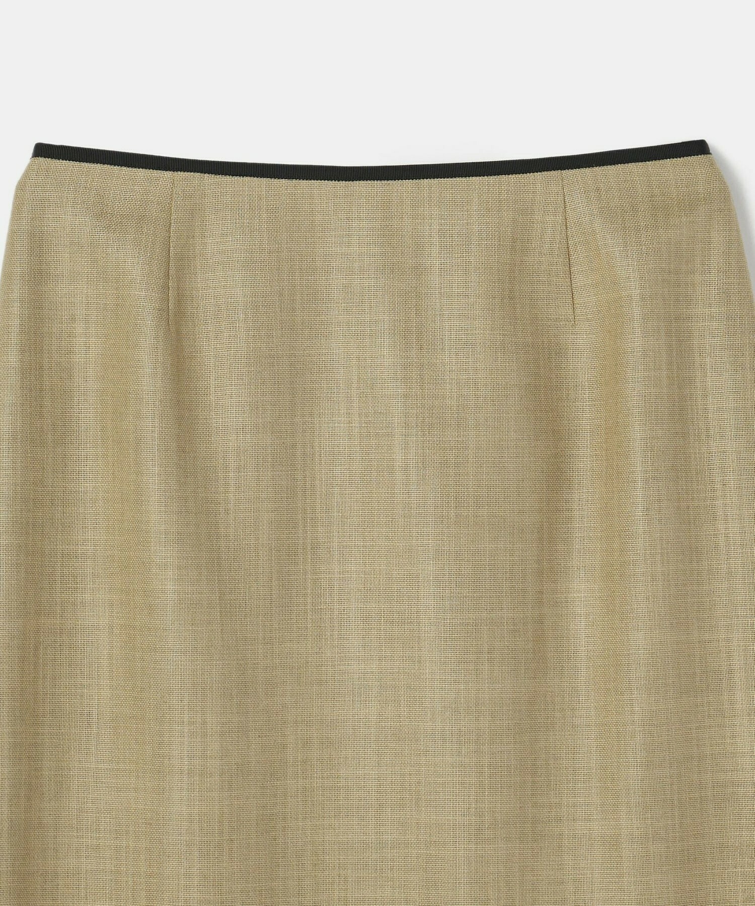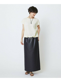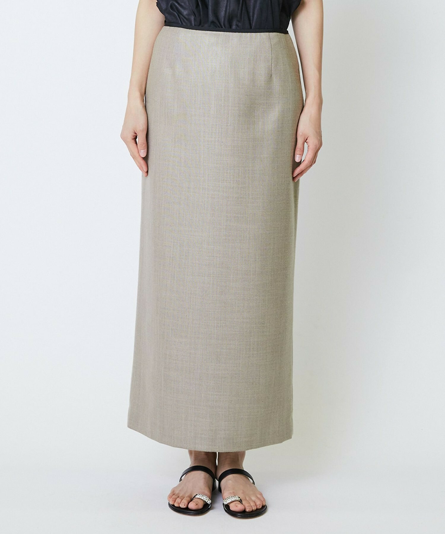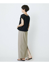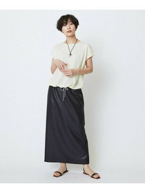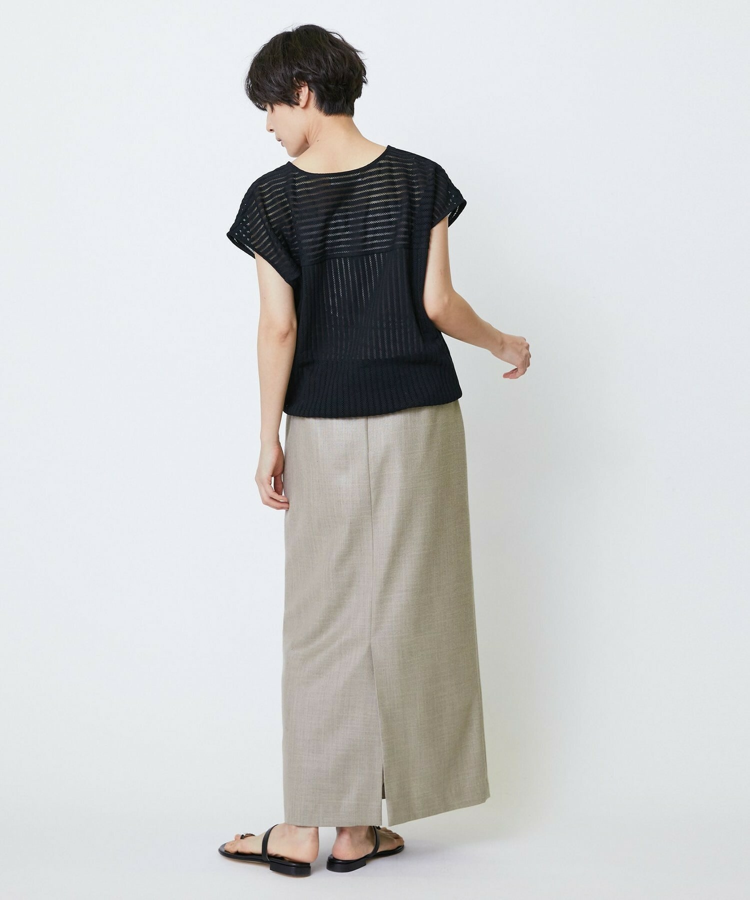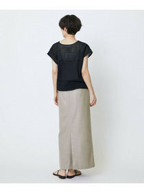 ラッセルメッシュストライプのトップスと好相性のシンプルなマキシタイトスカート。ウエストベルトを異素材にしただけのシンプルなデザイン。なんといっても素材感が特徴。ナチュラル感がありながら大人な表情のあるとても新鮮な素材です。