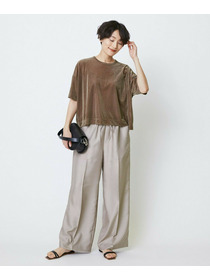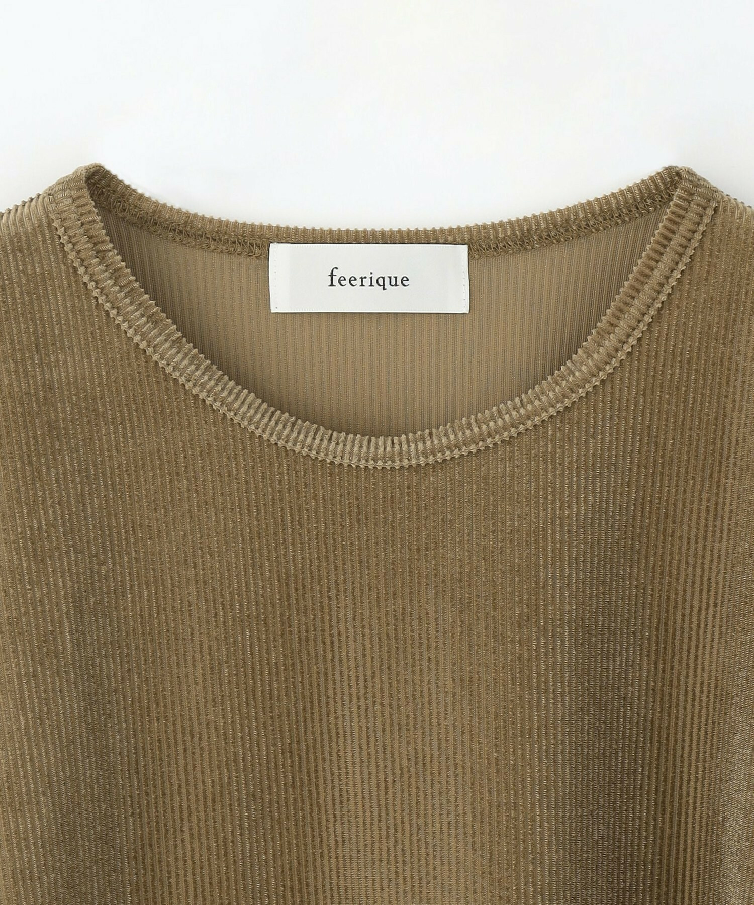 ハリヌキ編みで表現したリブのような見た目の新しいベロア素材。抜けているところに透け感があるので、ベロア素材でも少しカジュアル感があり軽やかに着られます。