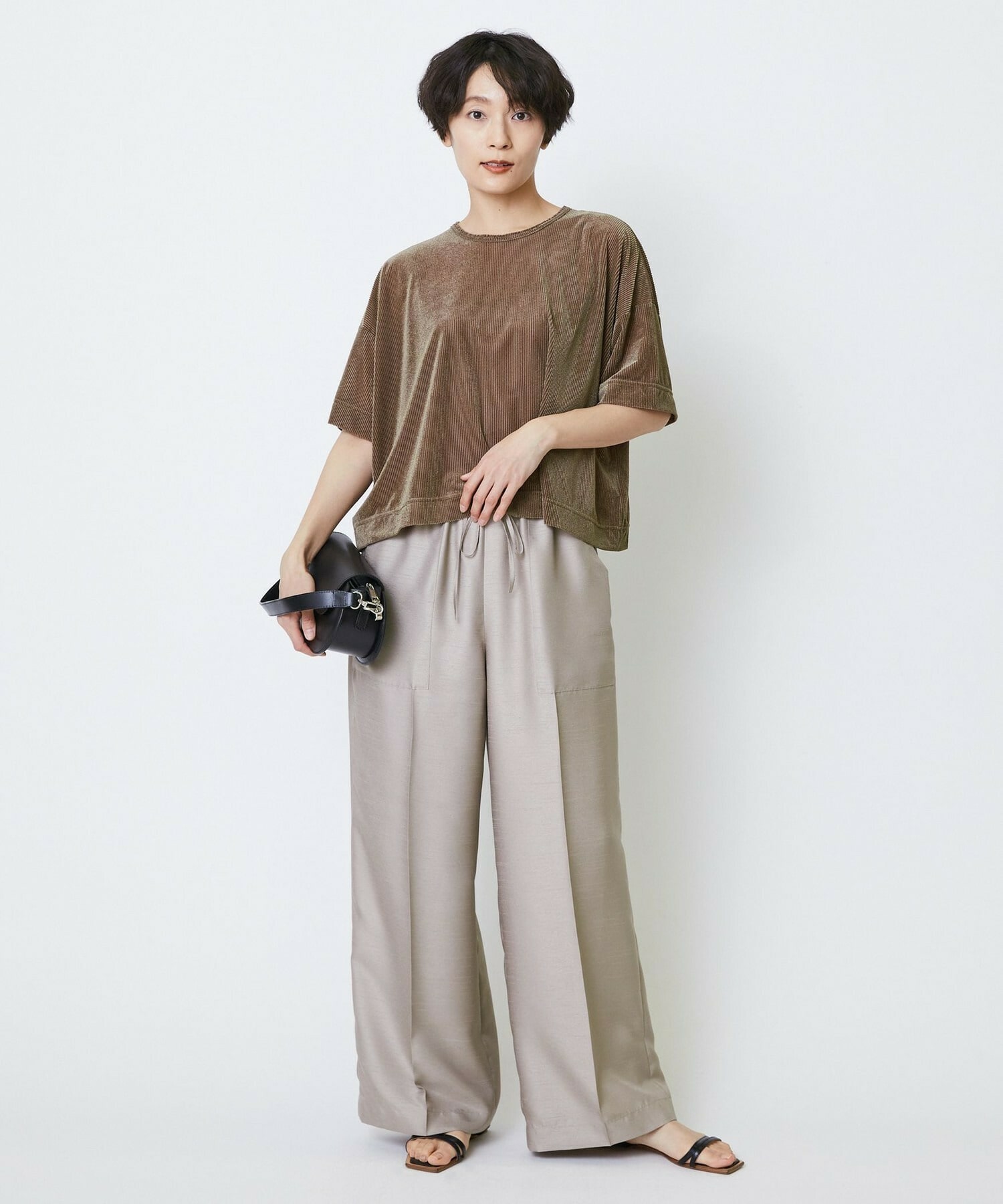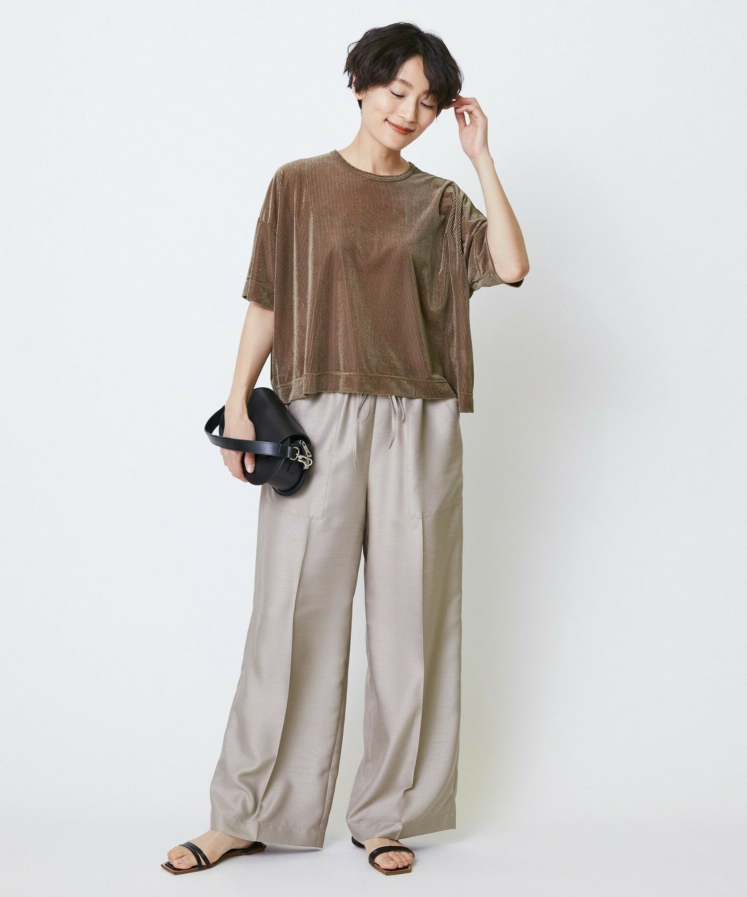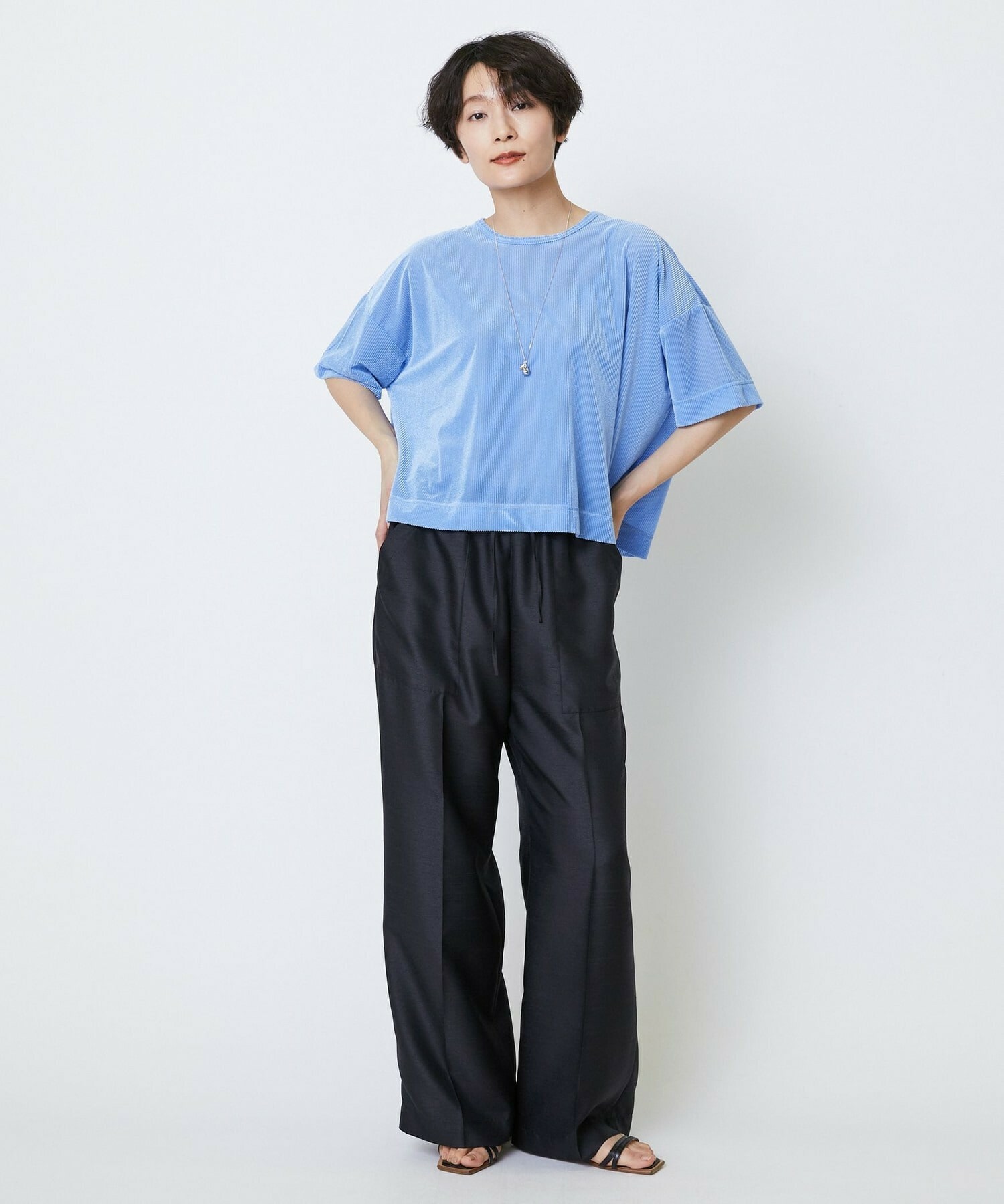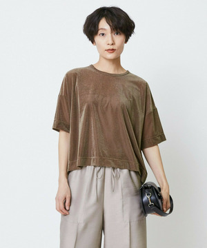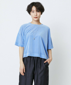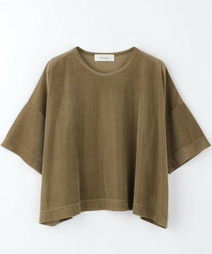 ゆったりしたビッグTシャツ型。素材に特徴があるので、あえてシンプルなデザインになっています。秋冬のにおいを取り入れつつすぐに着られ、コーディネートに新鮮さをプラスします。