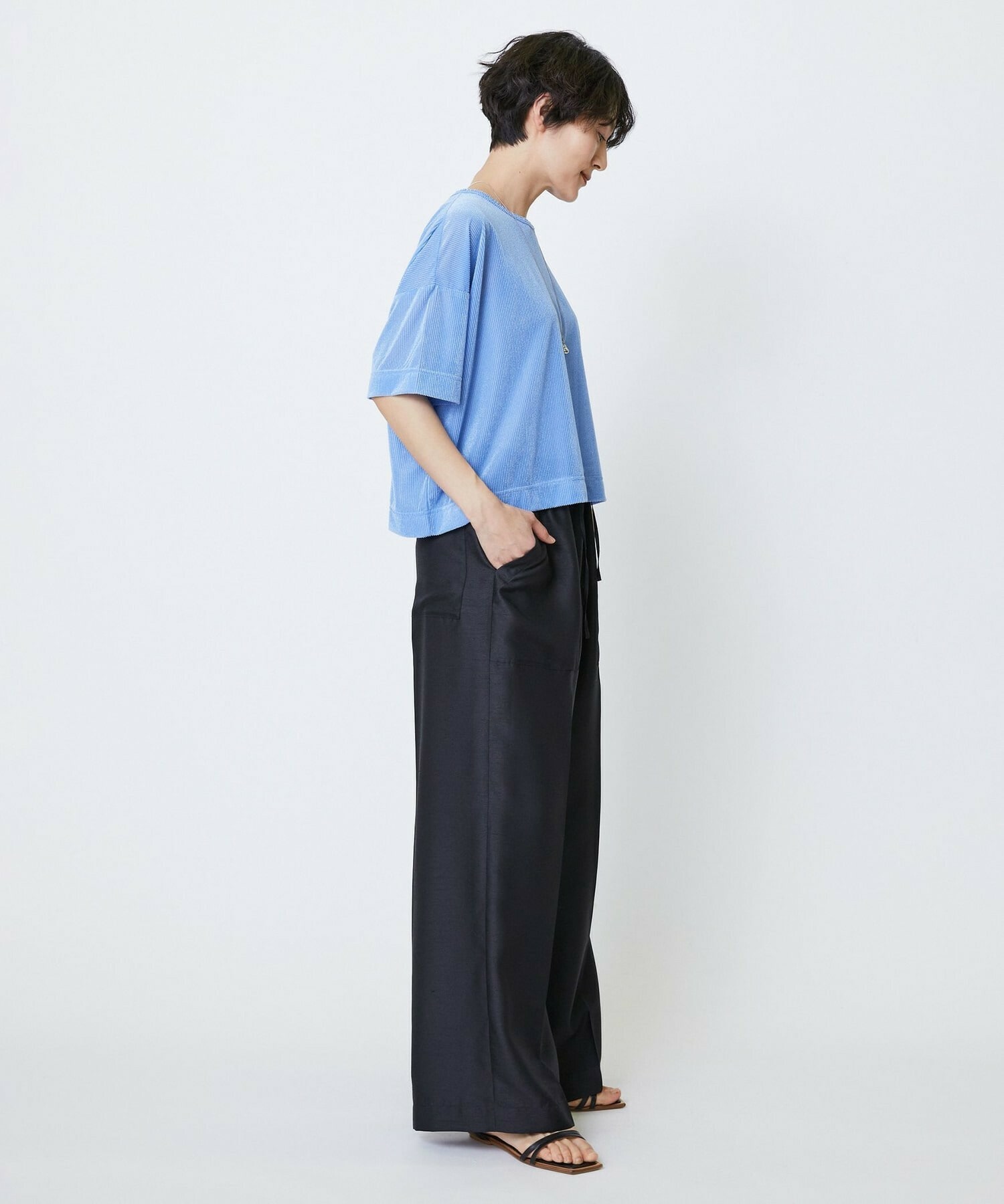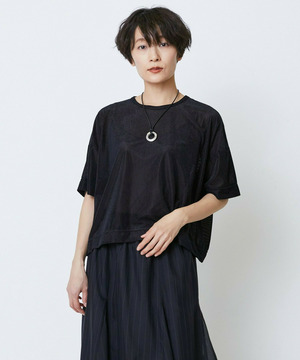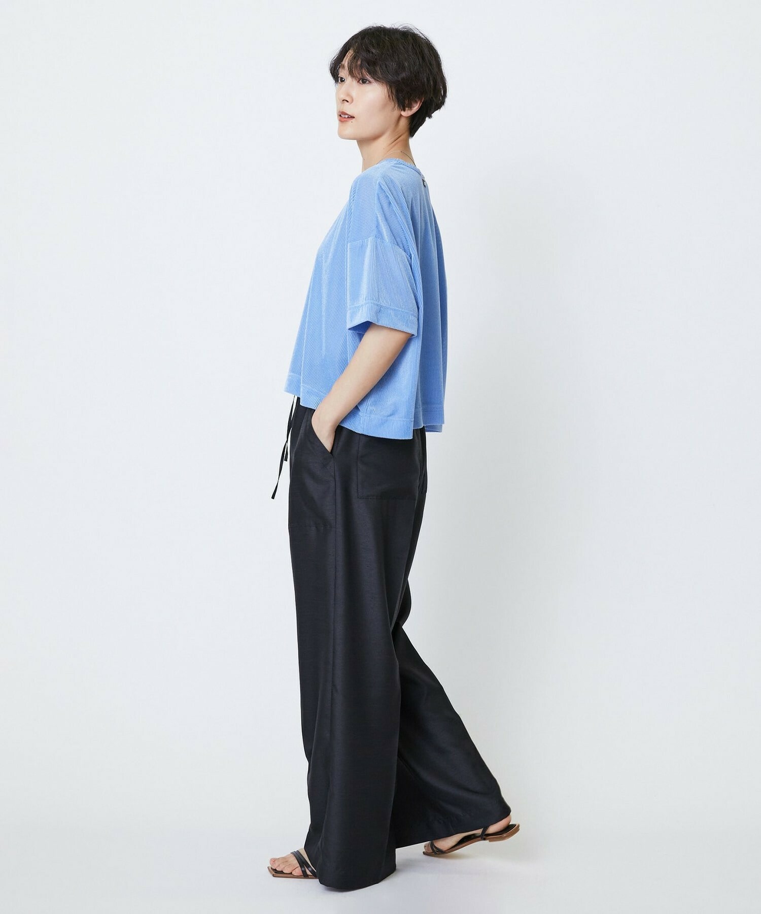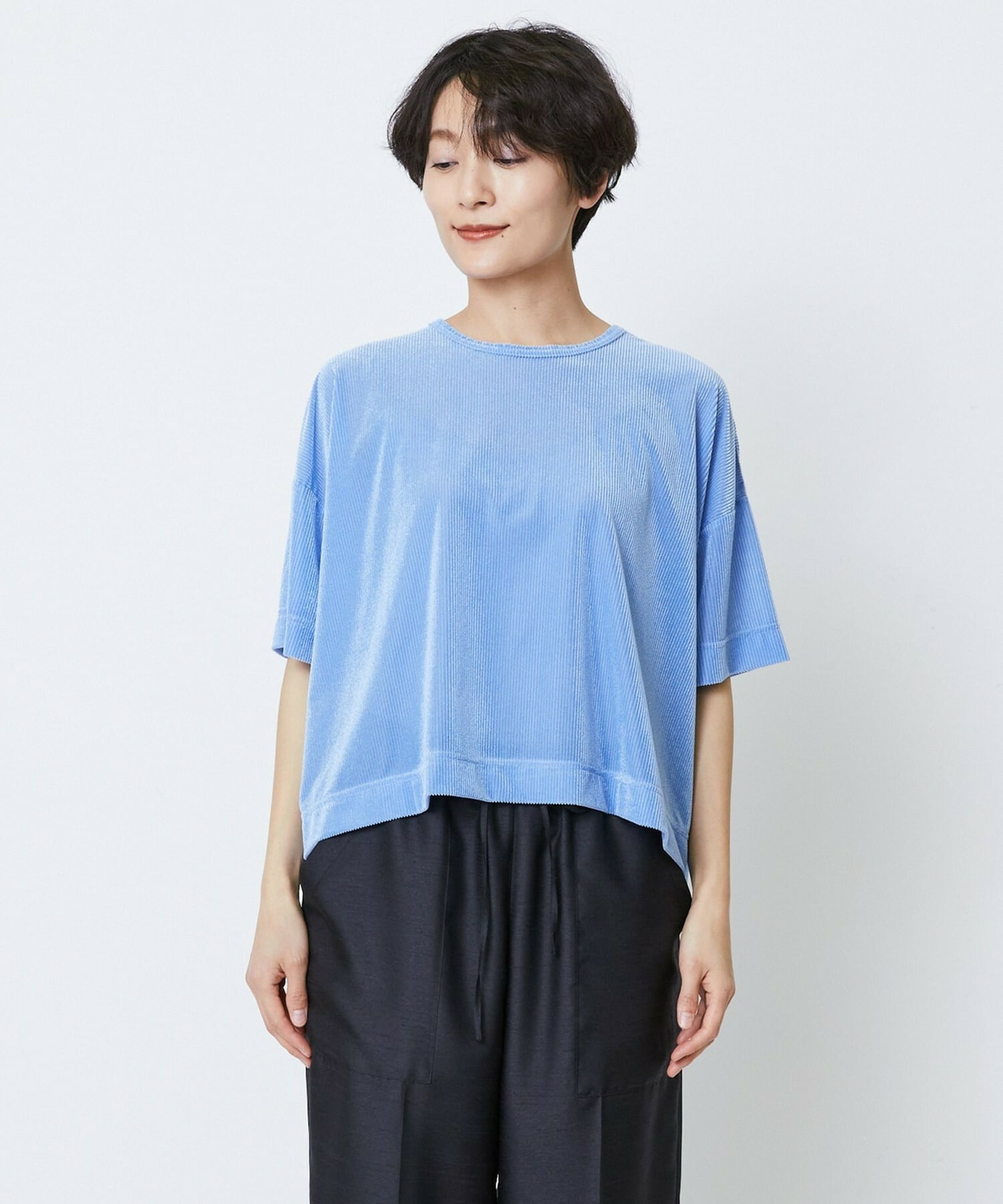 ゆったりしたビッグTシャツ型。素材に特徴があるので、あえてシンプルなデザインになっています。秋冬のにおいを取り入れつつすぐに着られ、コーディネートに新鮮さをプラスします。