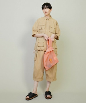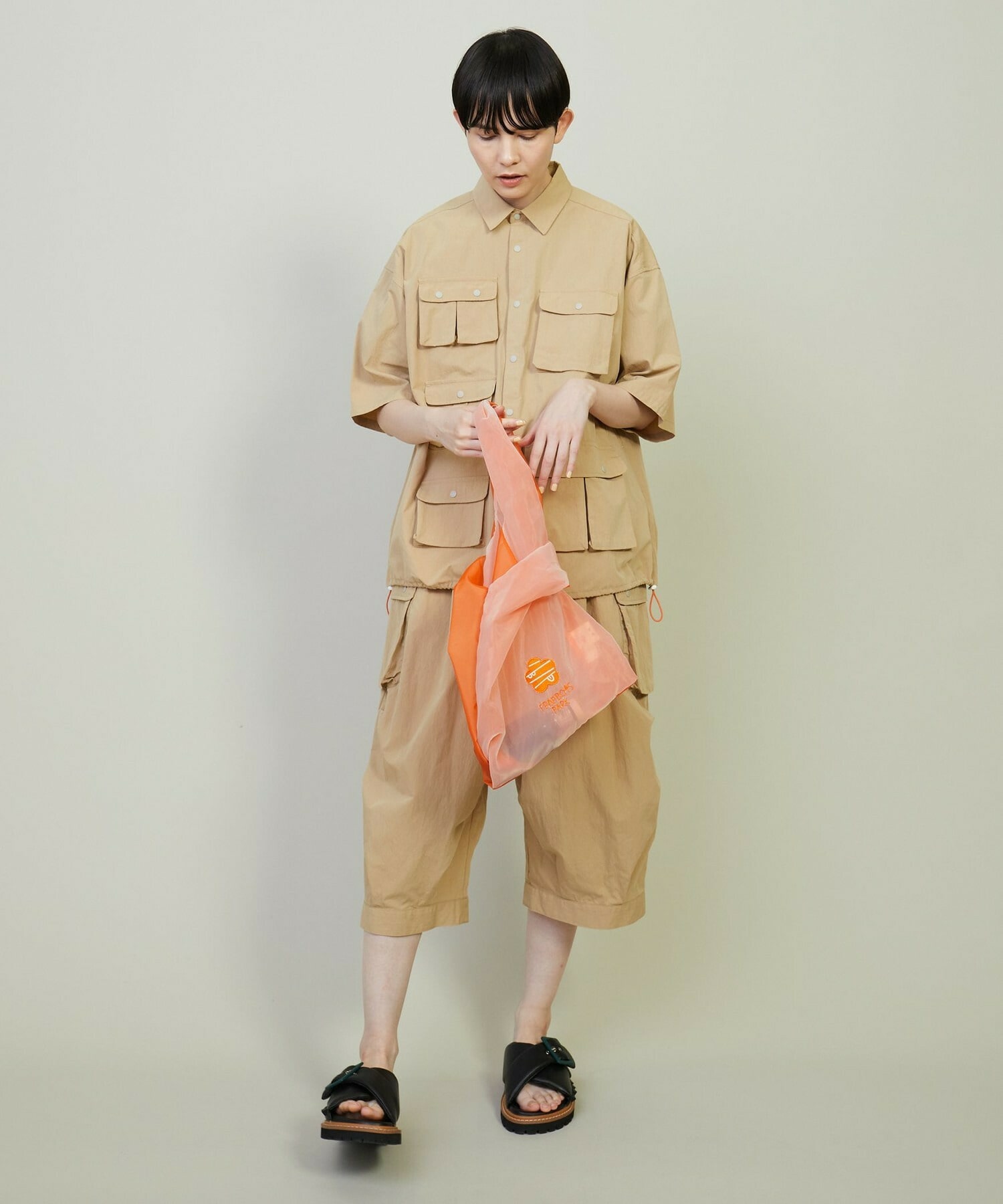 シアーで軽やかさがポイントのオーガンジー素材を2色使い重ねて色の違いを出した袋状のトートバッグ。