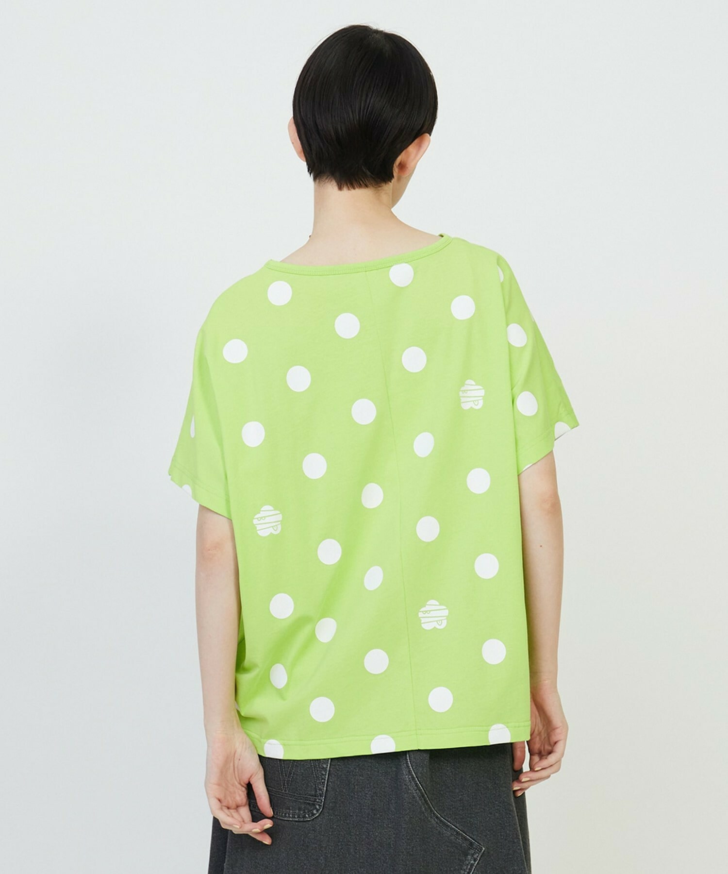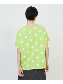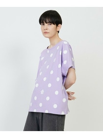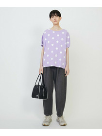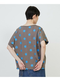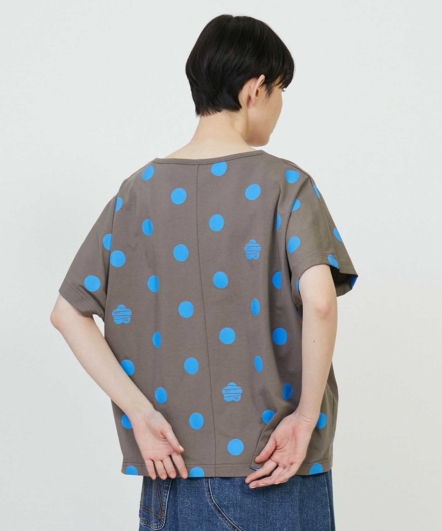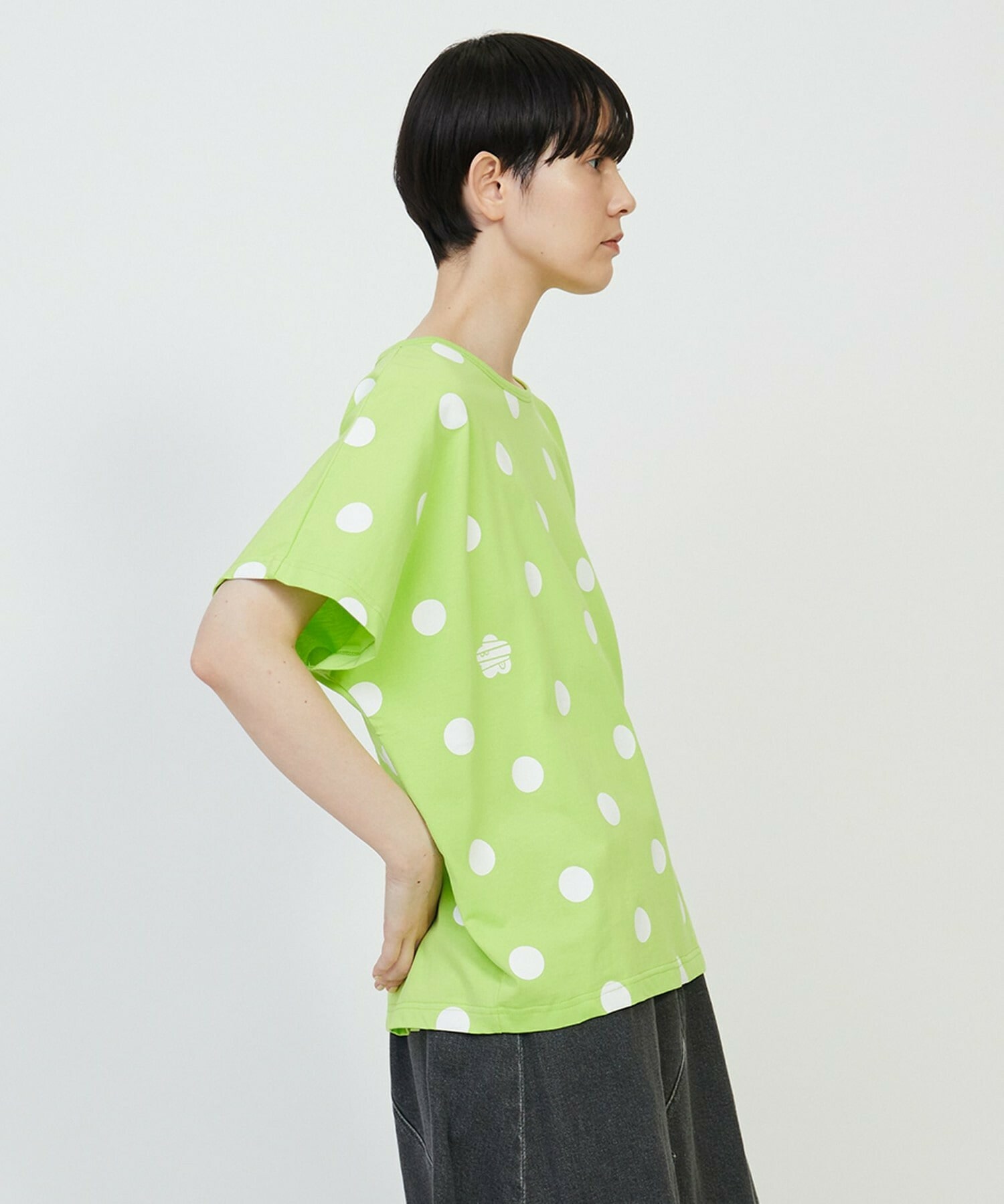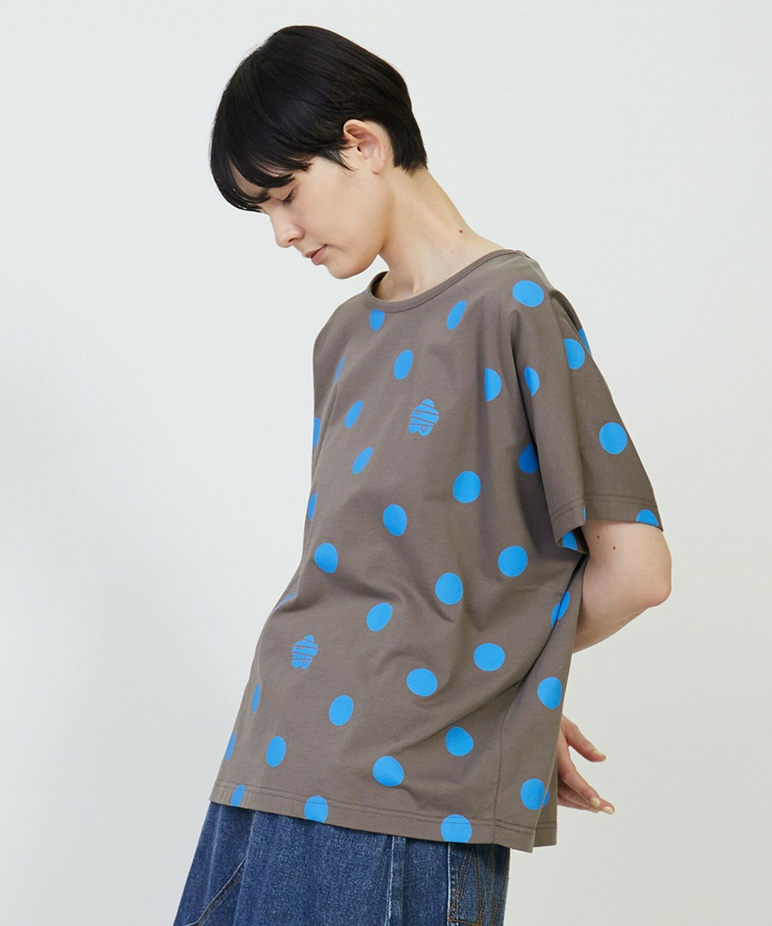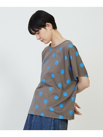 肌触りの良さが特徴の綿の天竺素材に、ドットの大きさ、間隔、配色こだわったオリジナルのプリントを入れています。