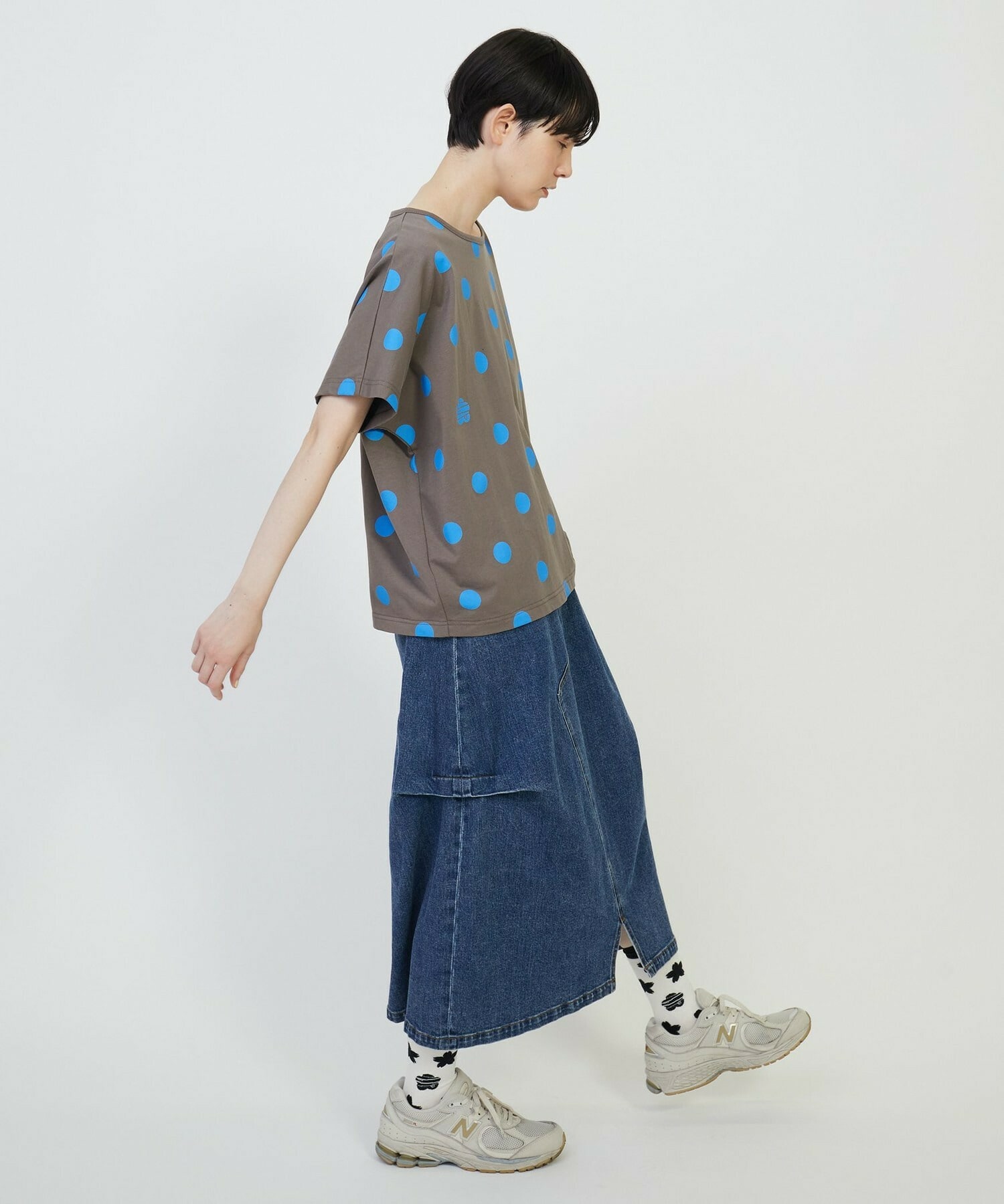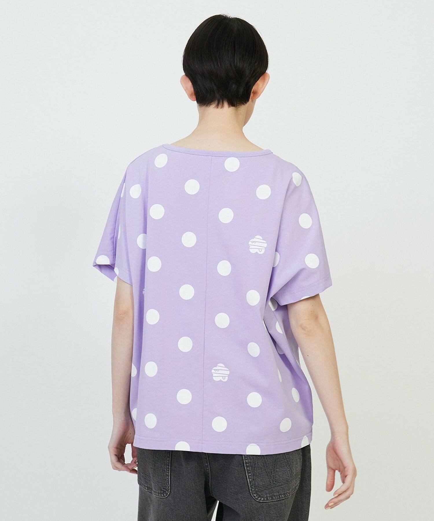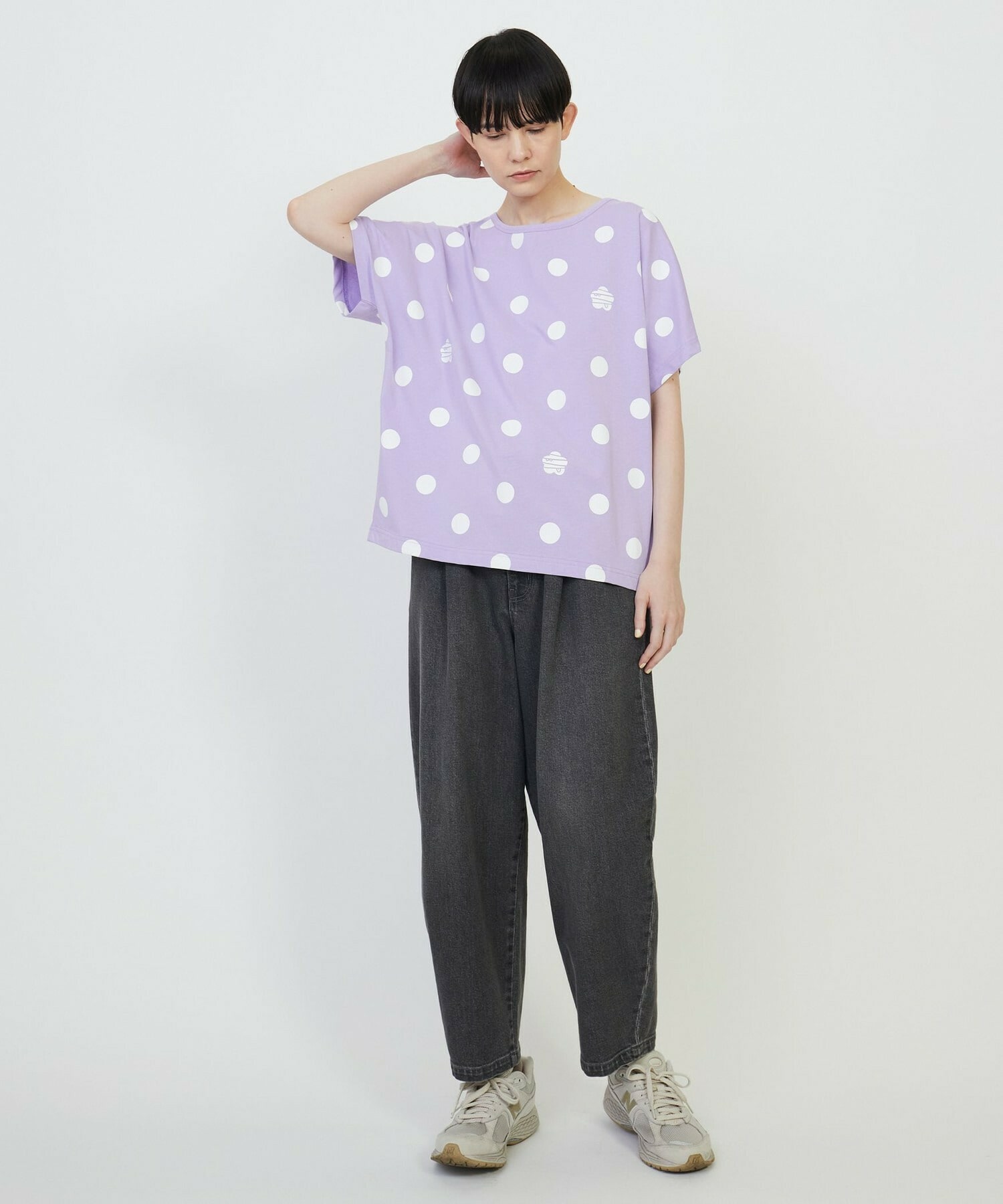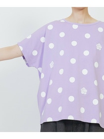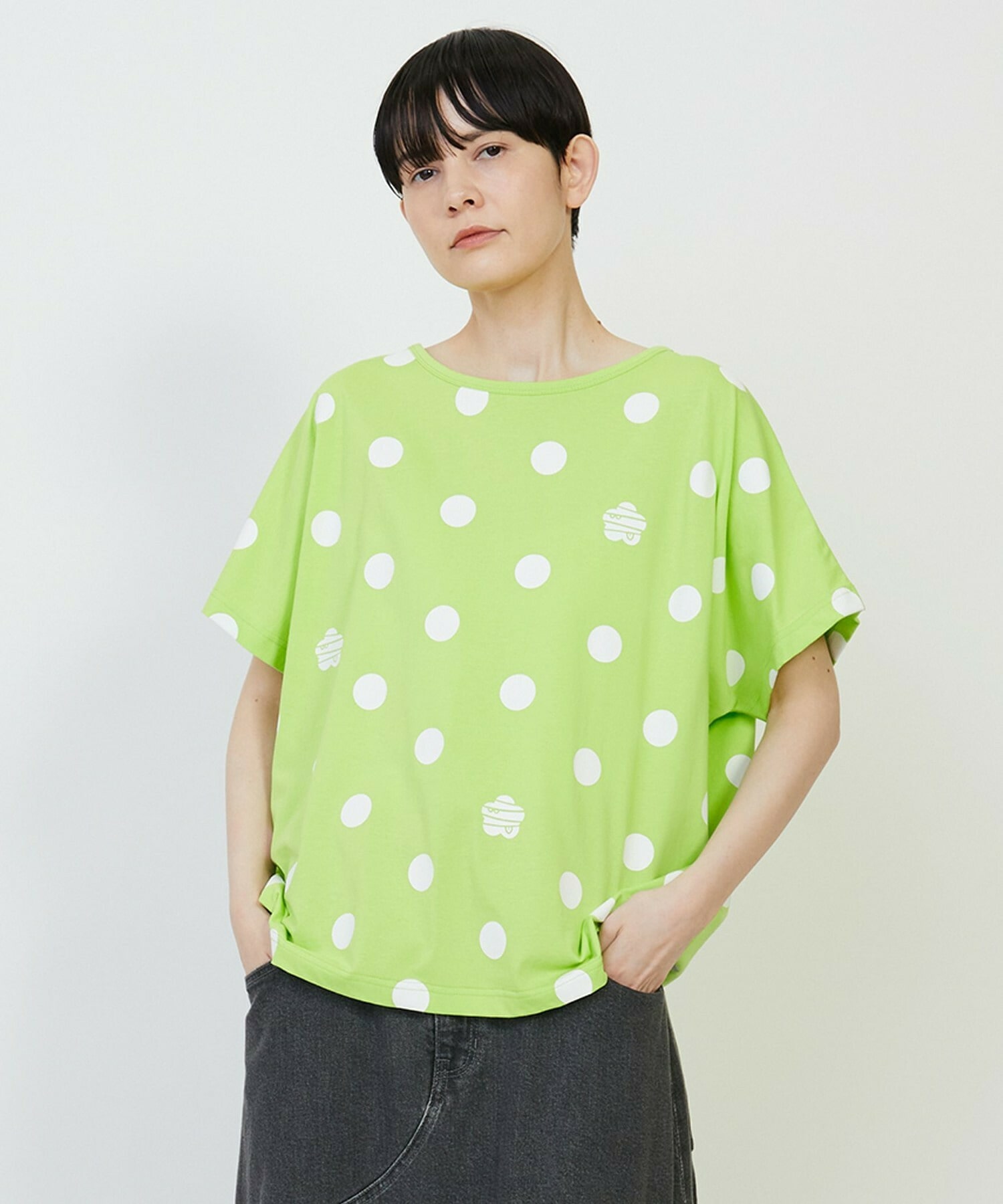 肌触りの良さが特徴の綿の天竺素材に、ドットの大きさ、間隔、配色こだわったオリジナルのプリントを入れています。