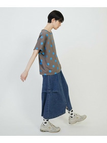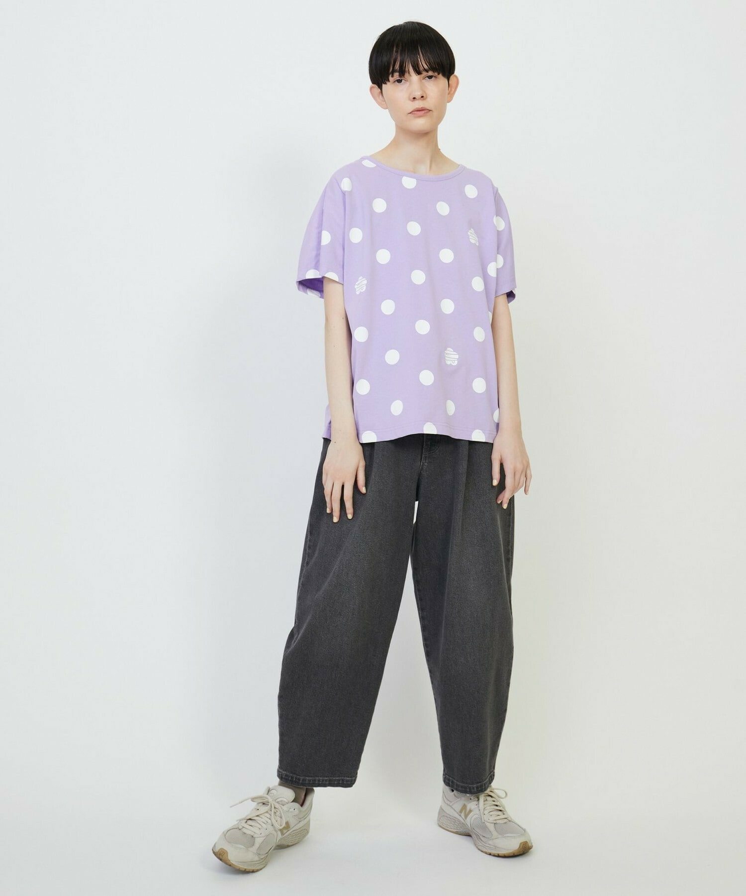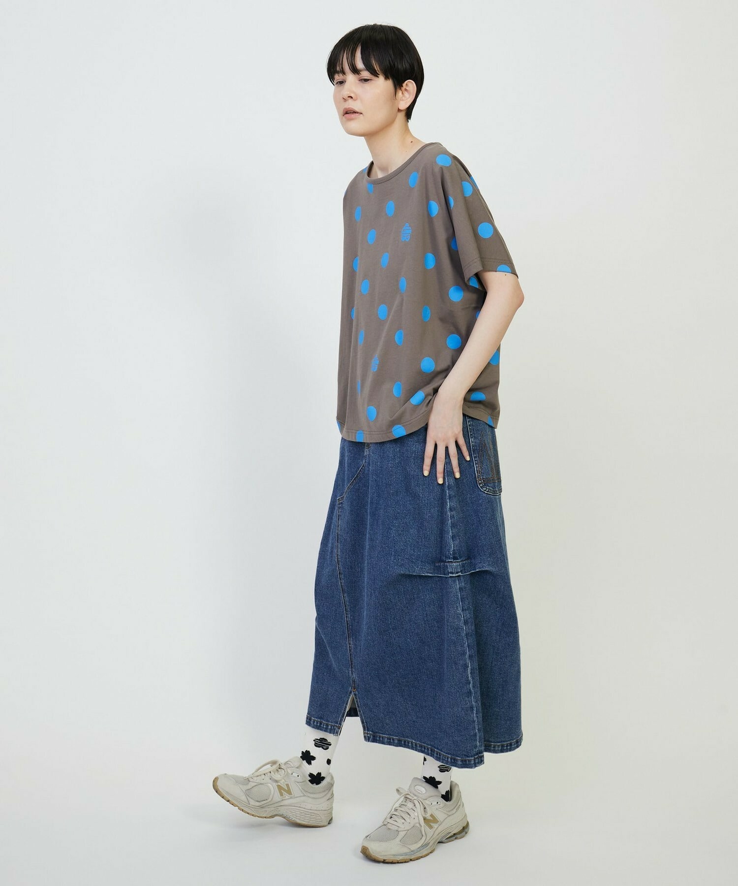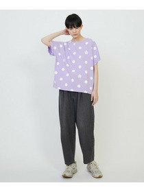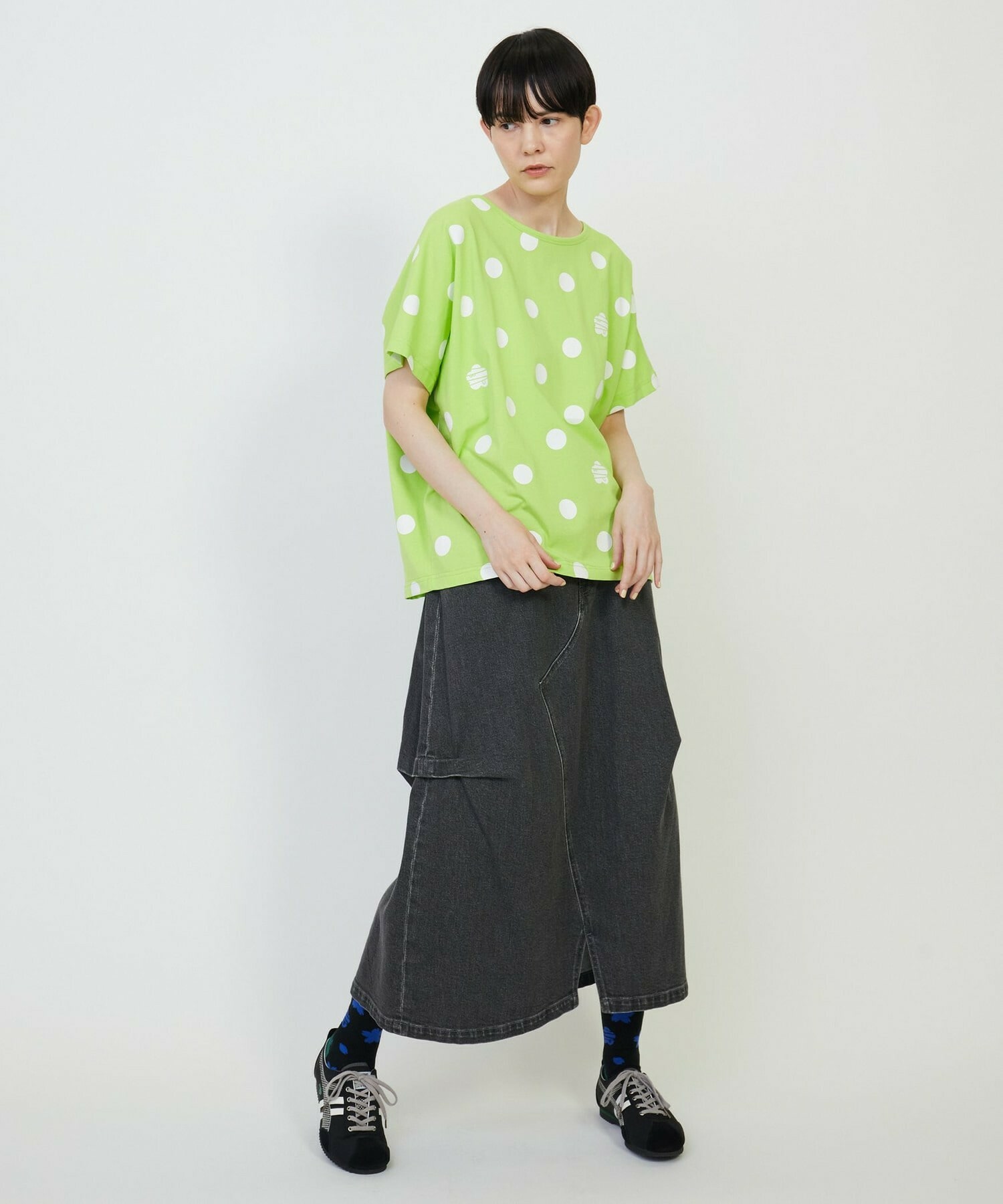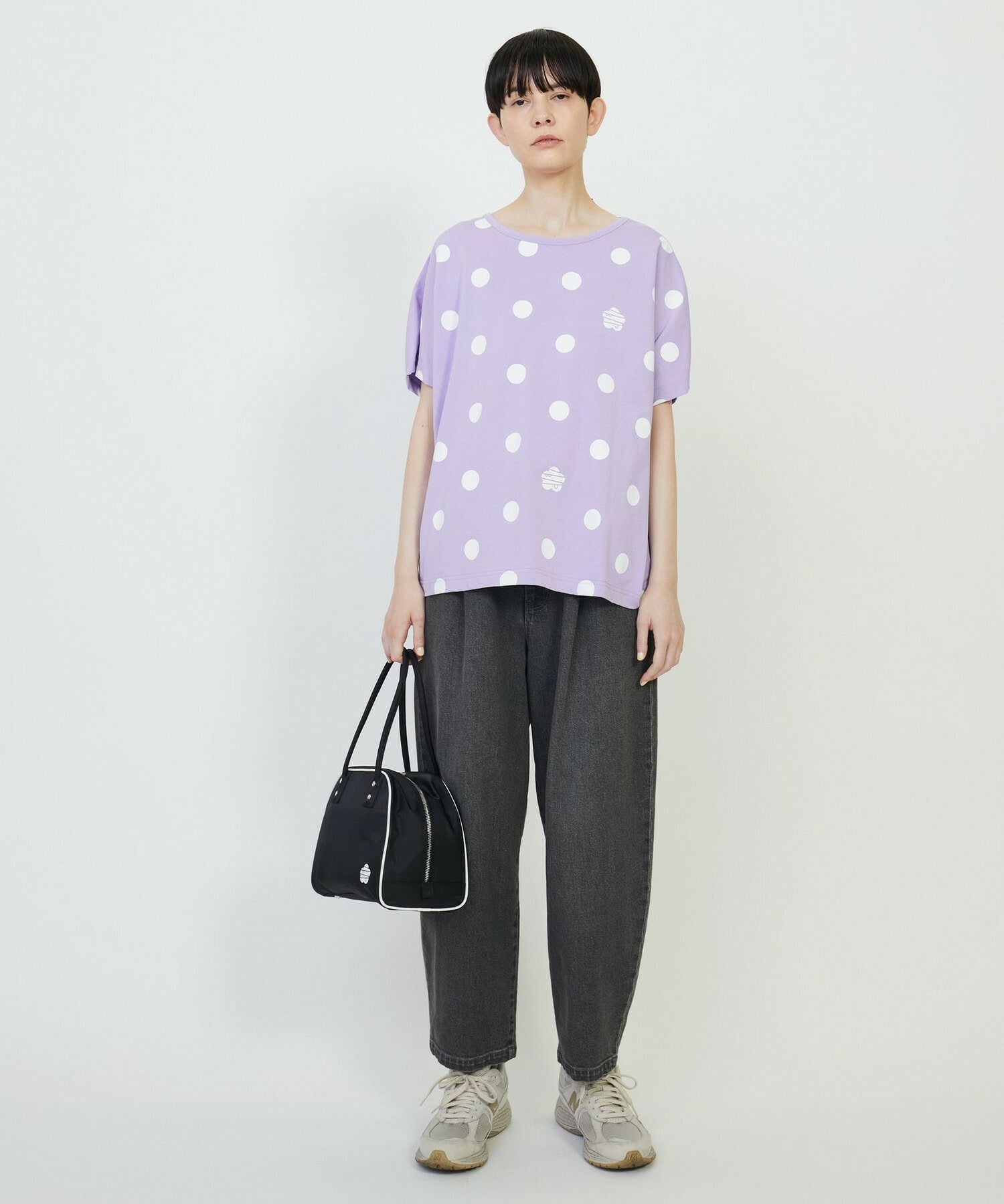 肌触りの良さが特徴の綿の天竺素材に、ドットの大きさ、間隔、配色こだわったオリジナルのプリントを入れています。