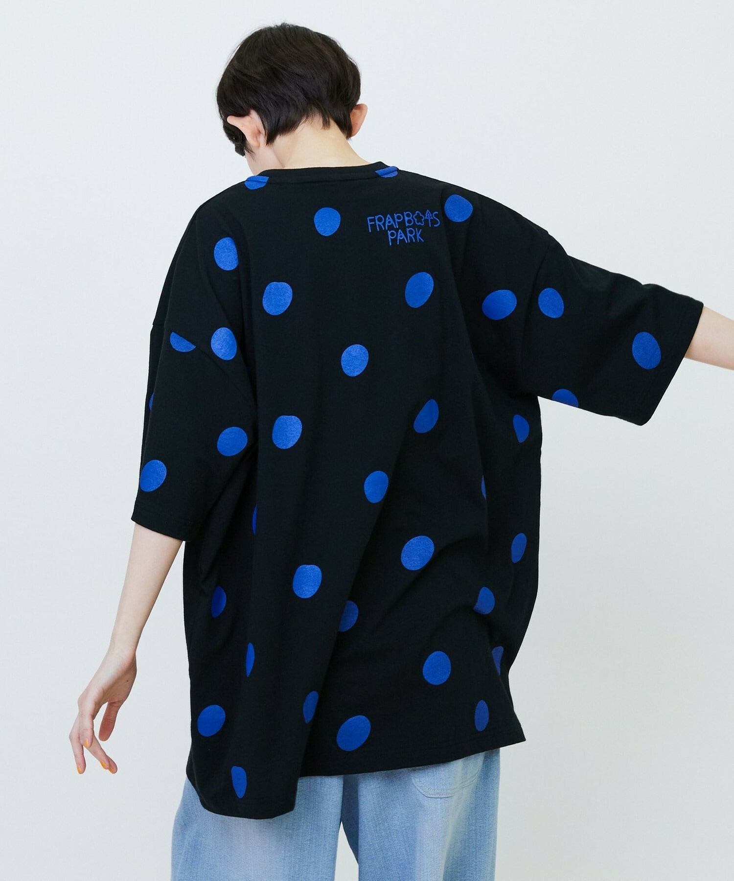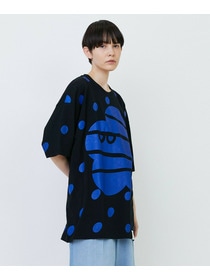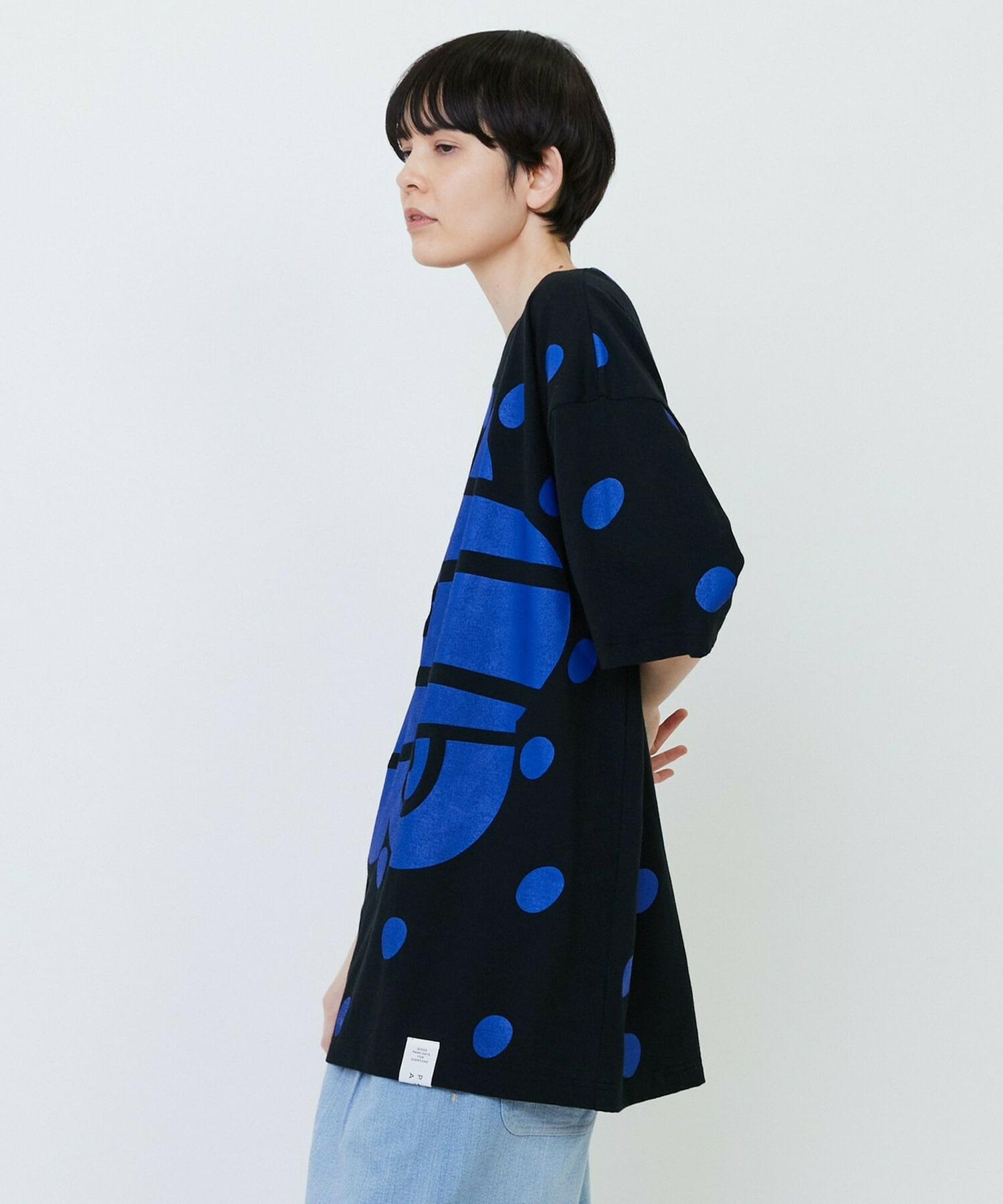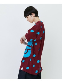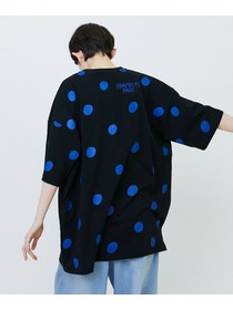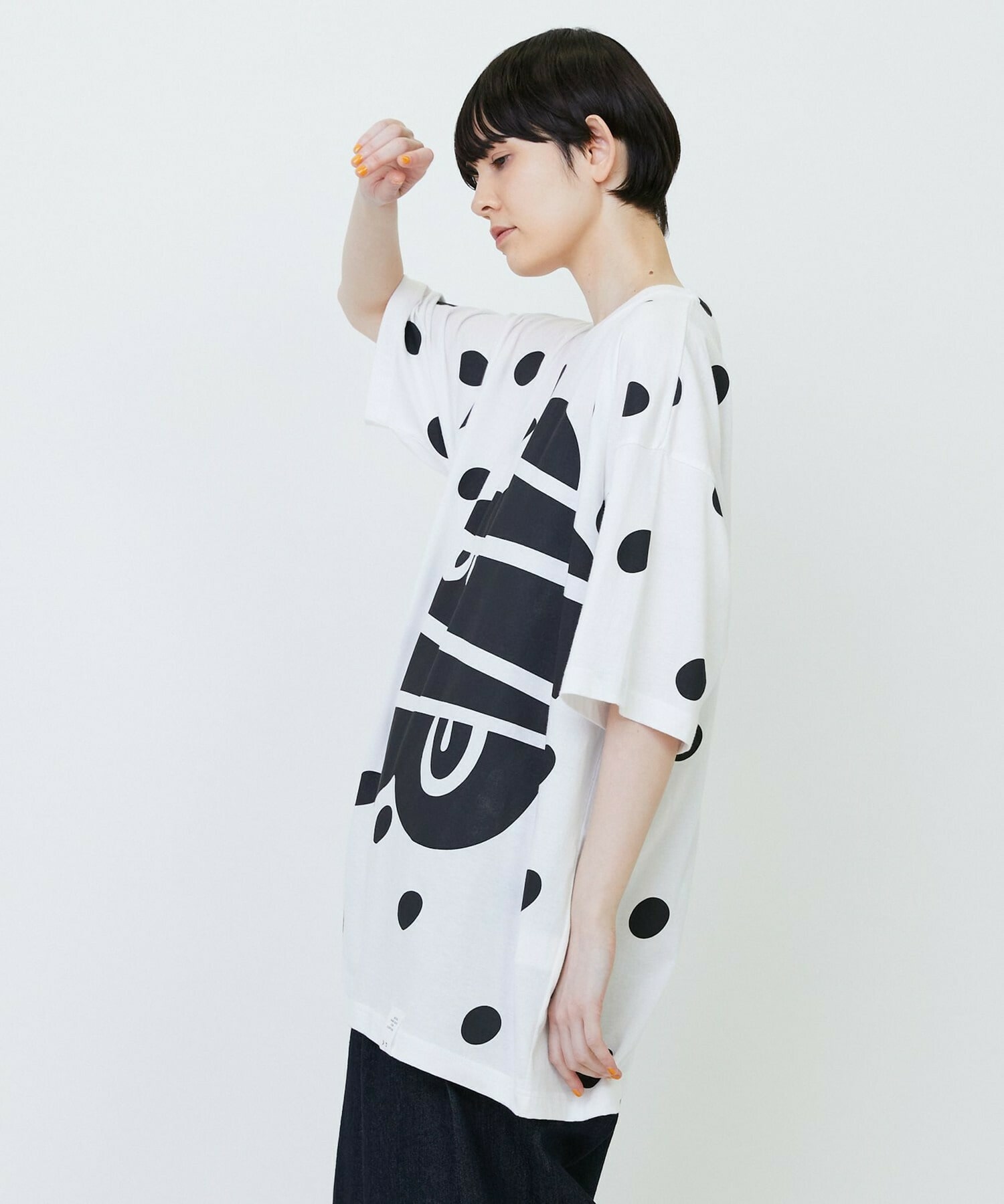 適度な厚みと程よい膨らみ感が特徴の綿の天竺素材に変形のドット柄をプリントしたカットソー。