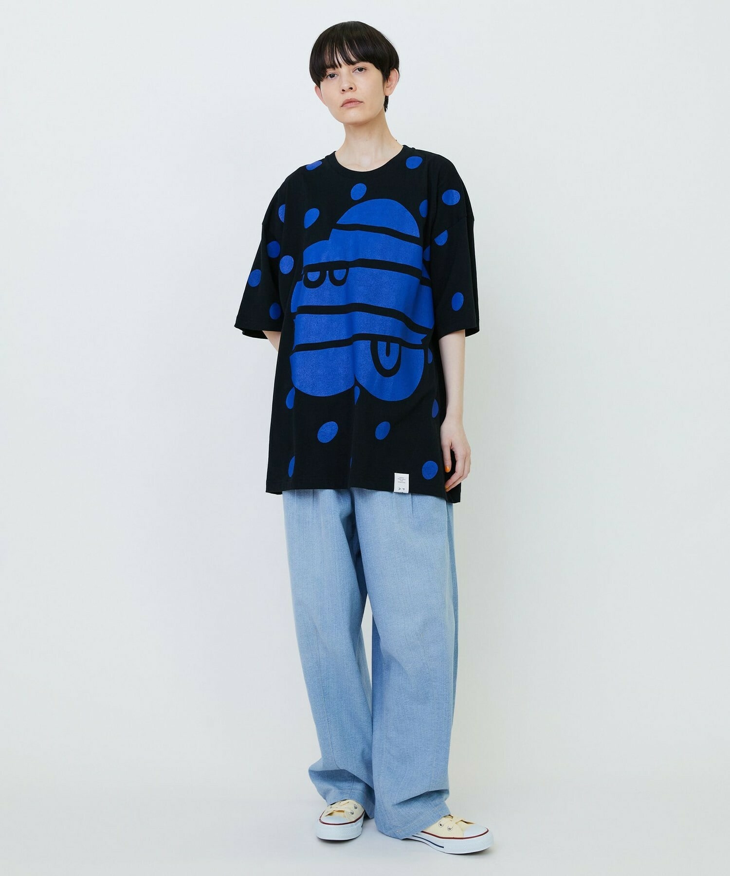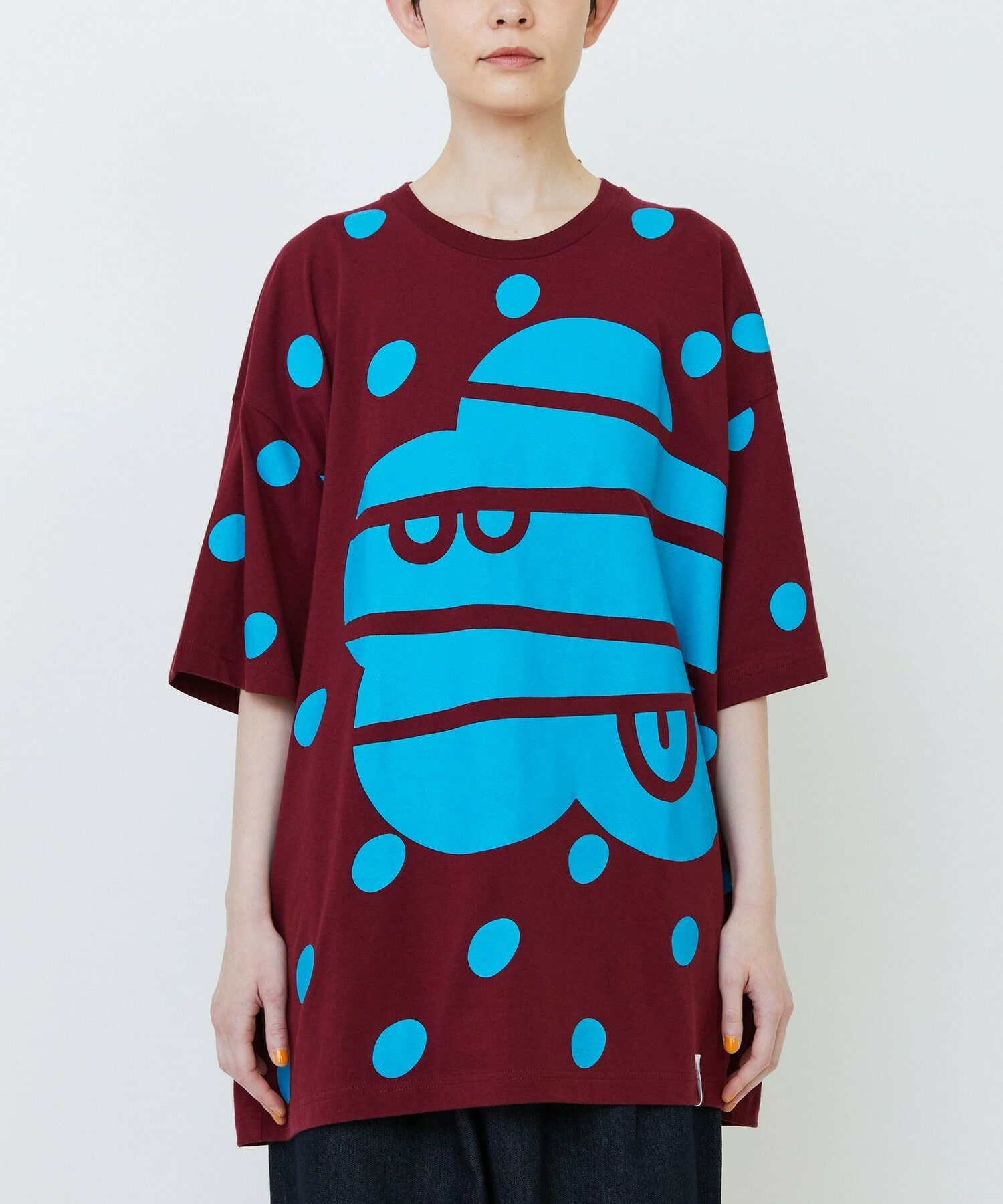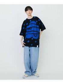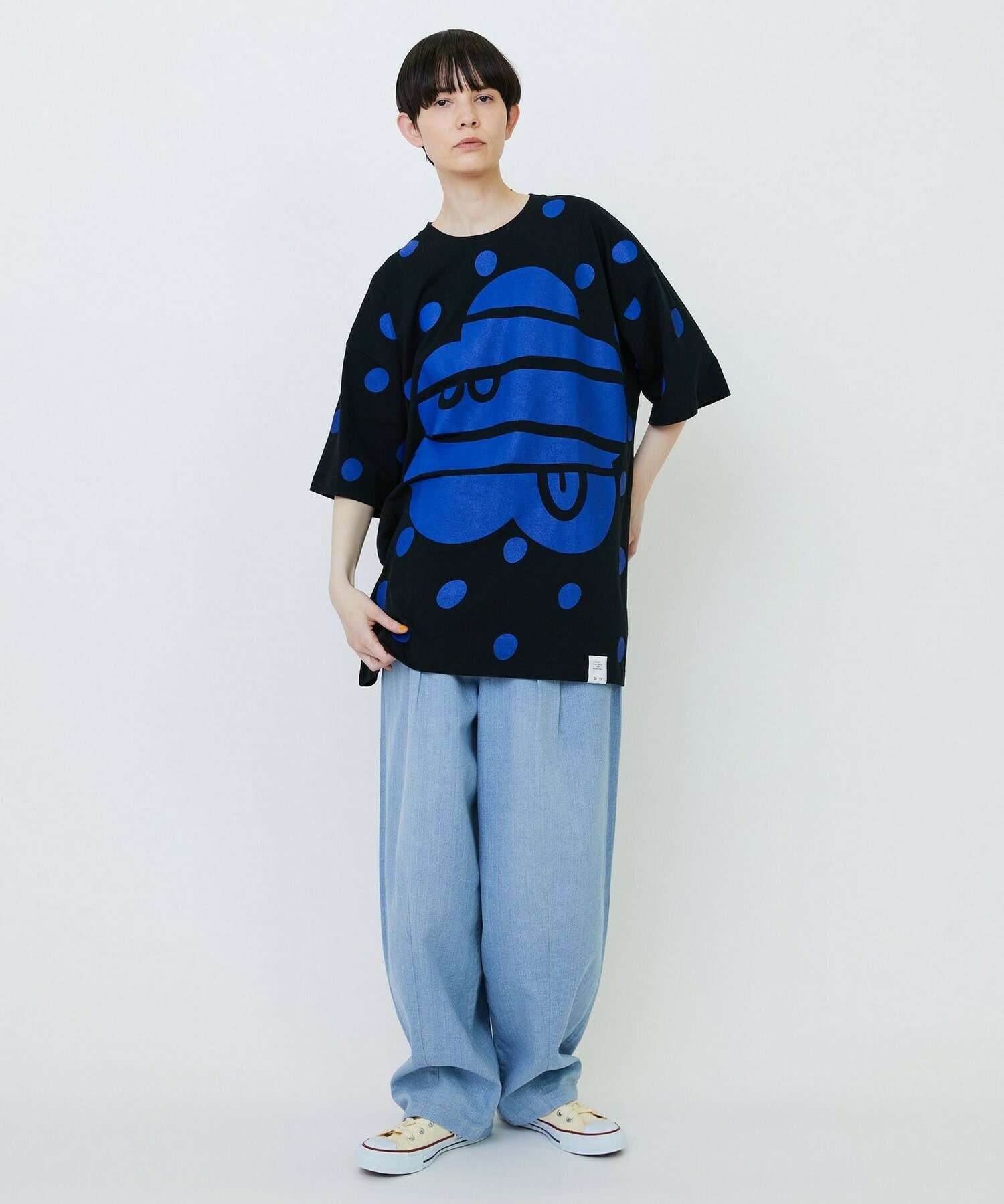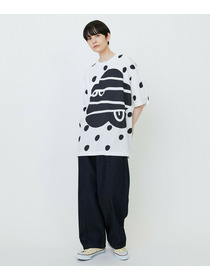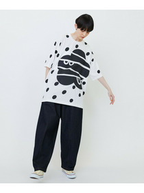適度な厚みと程よい膨らみ感が特徴の綿の天竺素材に変形のドット柄をプリントしたカットソー。