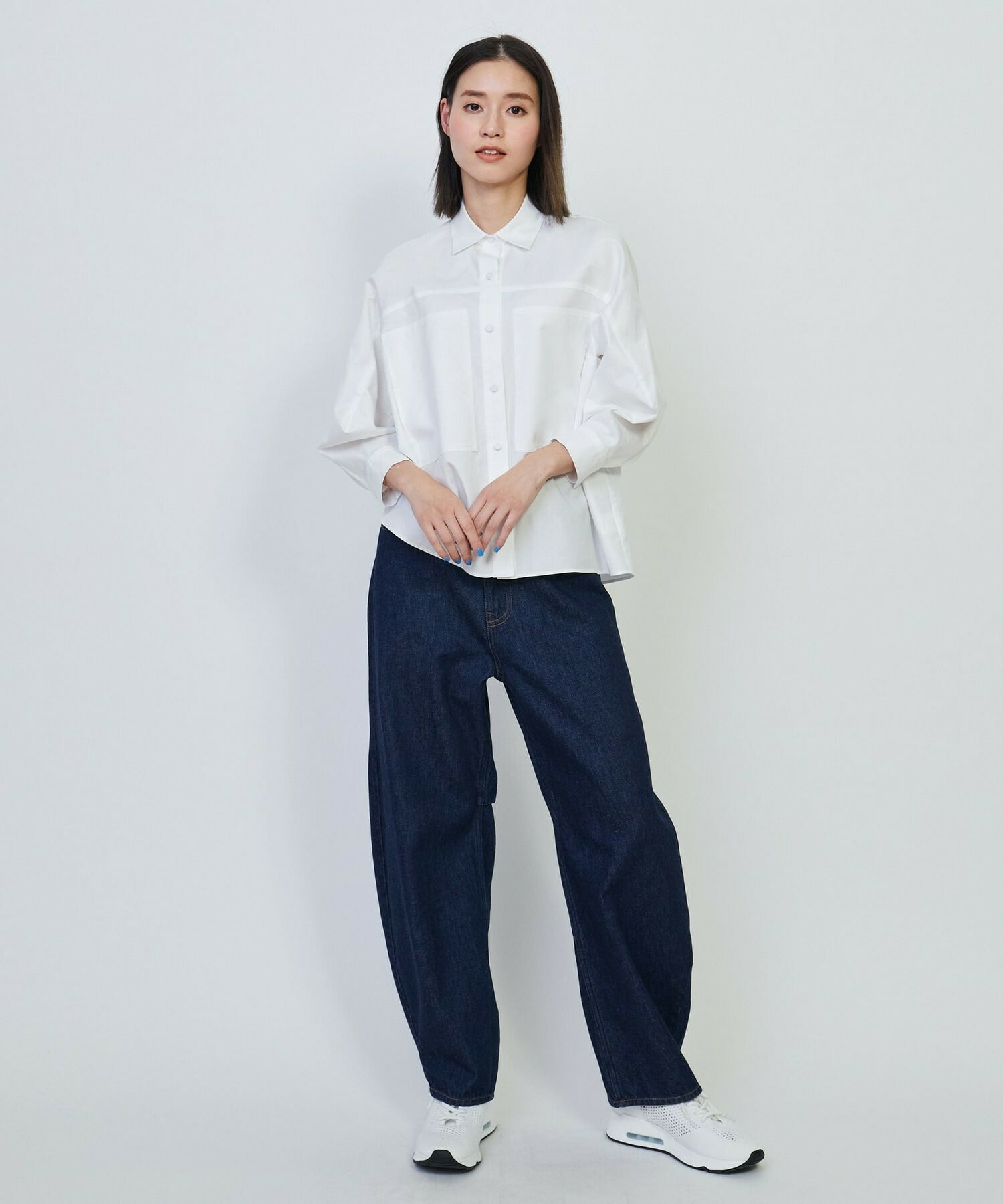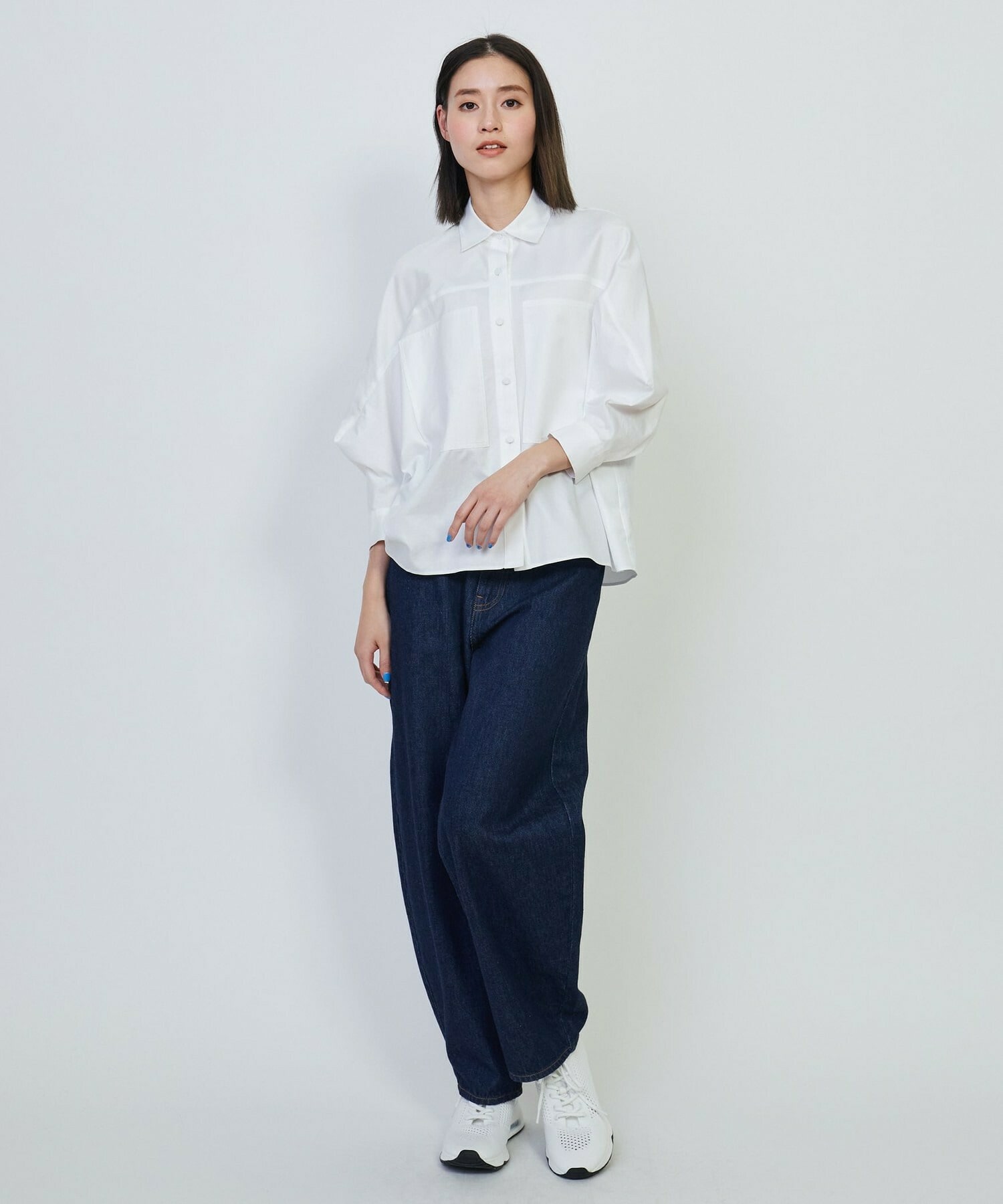 天然素材の肌触りの良いソフトなコットンツイルを使用し、きれいめにもカジュアルダウンしたスタイリングにも着回し可能なデザインに仕上げています。大きめのポケットもデザインのアクセントになり、透け感も気にせず着用していただけます。