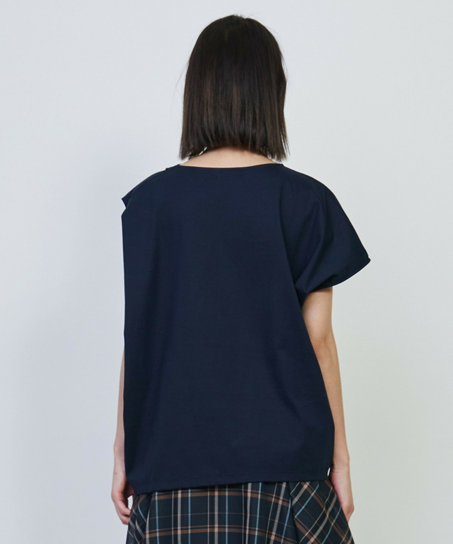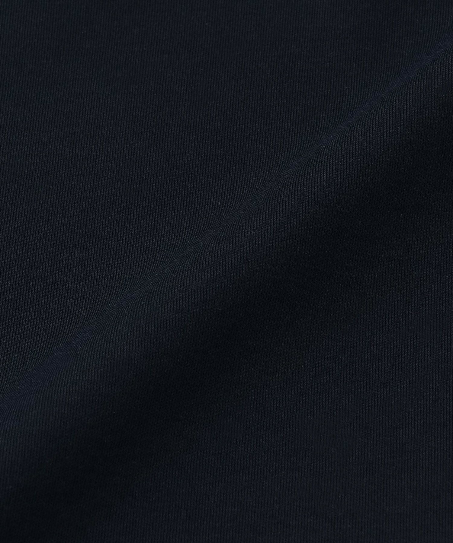 この素材は、毛羽の少ないコンパクト原料を使用し、生地にダメージが少ない特殊染色方法で加工した素材です。綿の膨らみと、透けにくい肉感が特徴です。