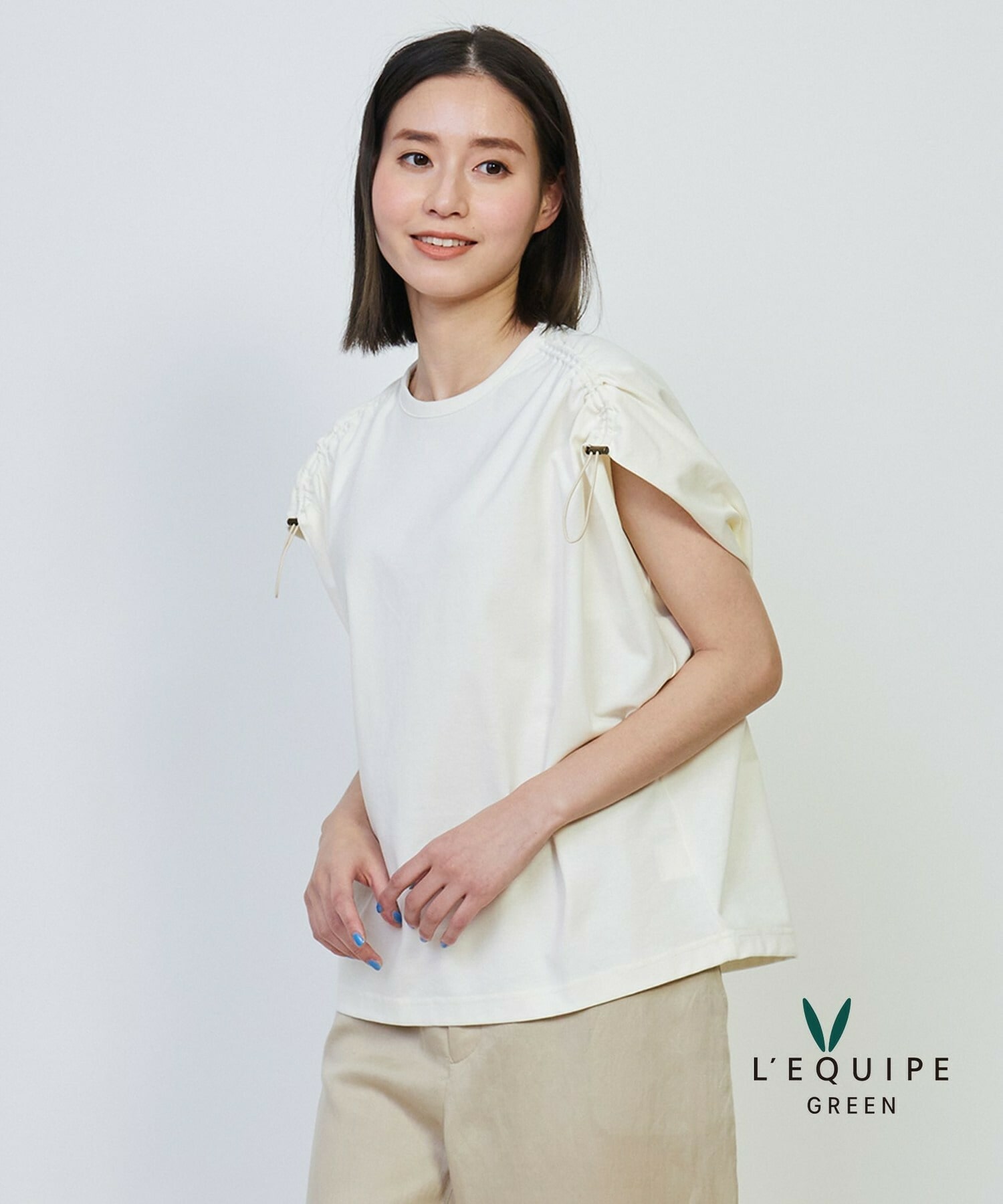 • 【GREEN】ハイゲージスムースフレンチスリーブプルオーバー 詳細画像 オフホワイト 1