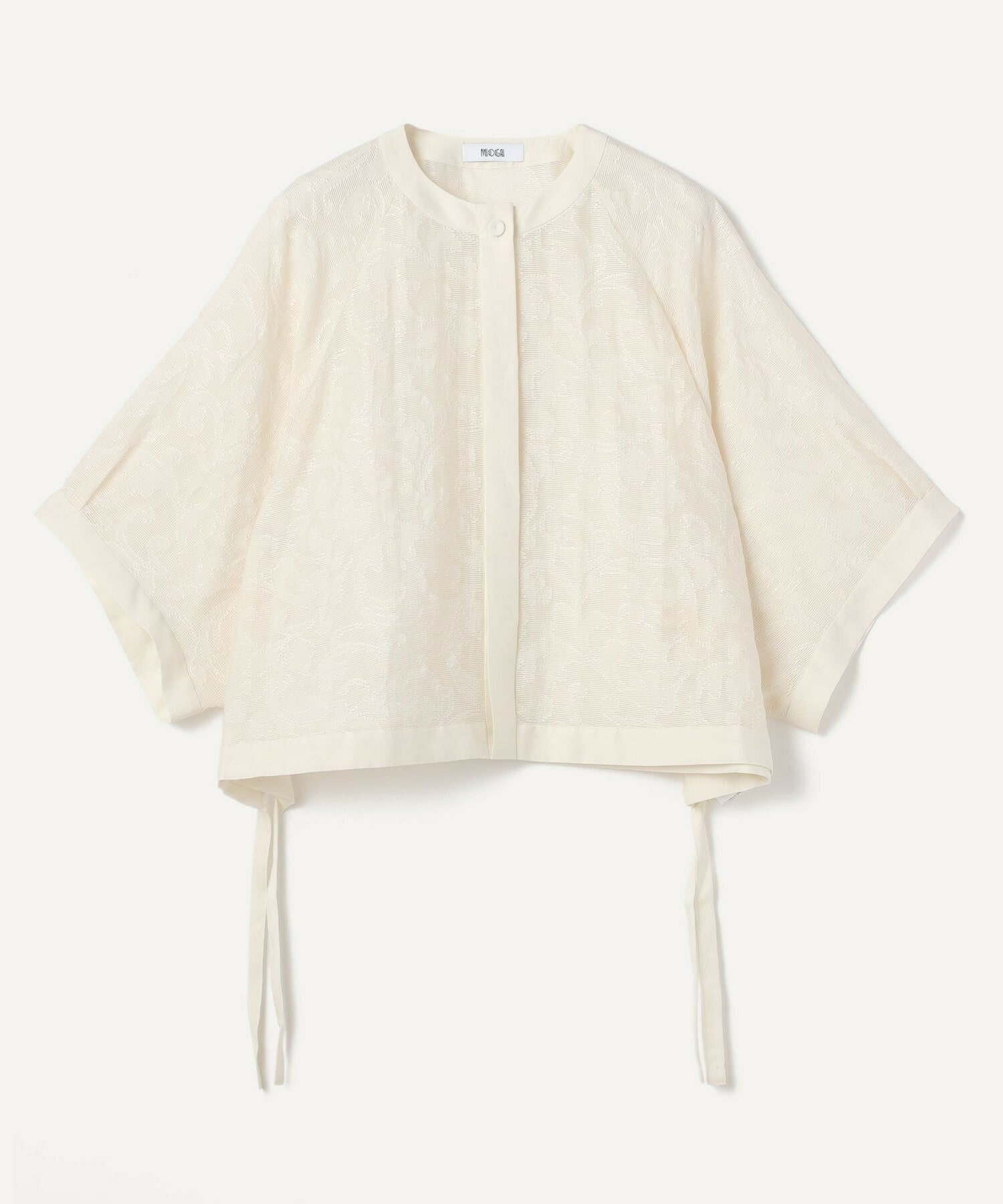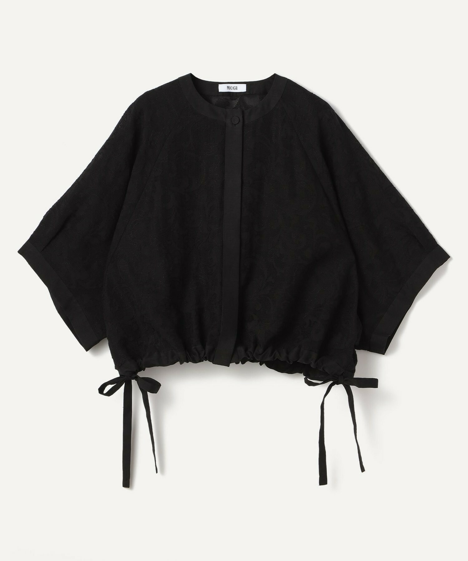 ラグランスリーブをケープのように分量感をだしたデザインで、エレガントで女性らしく仕上げています。