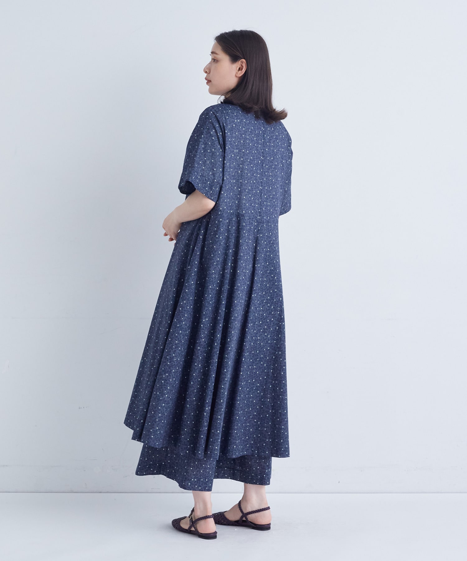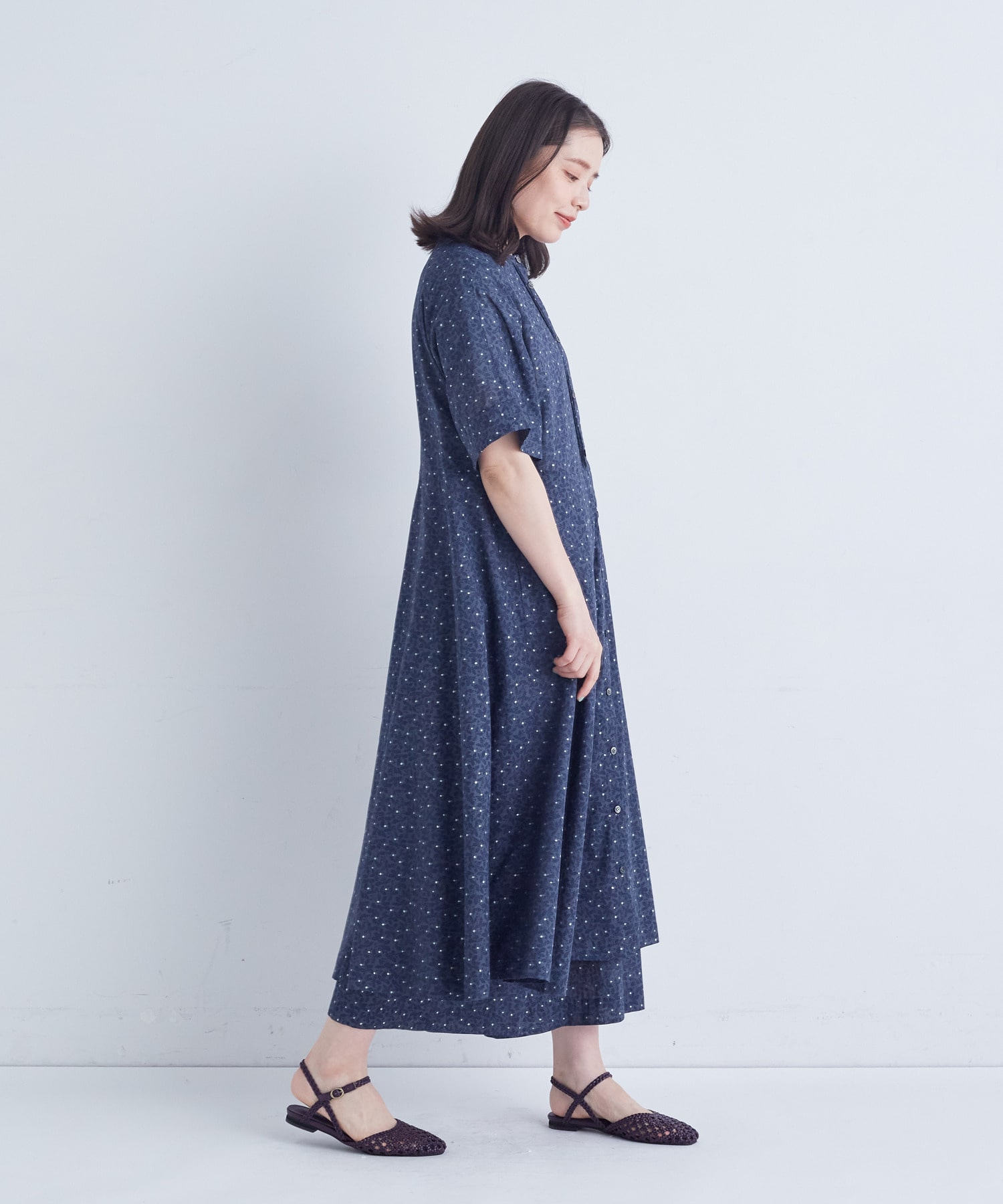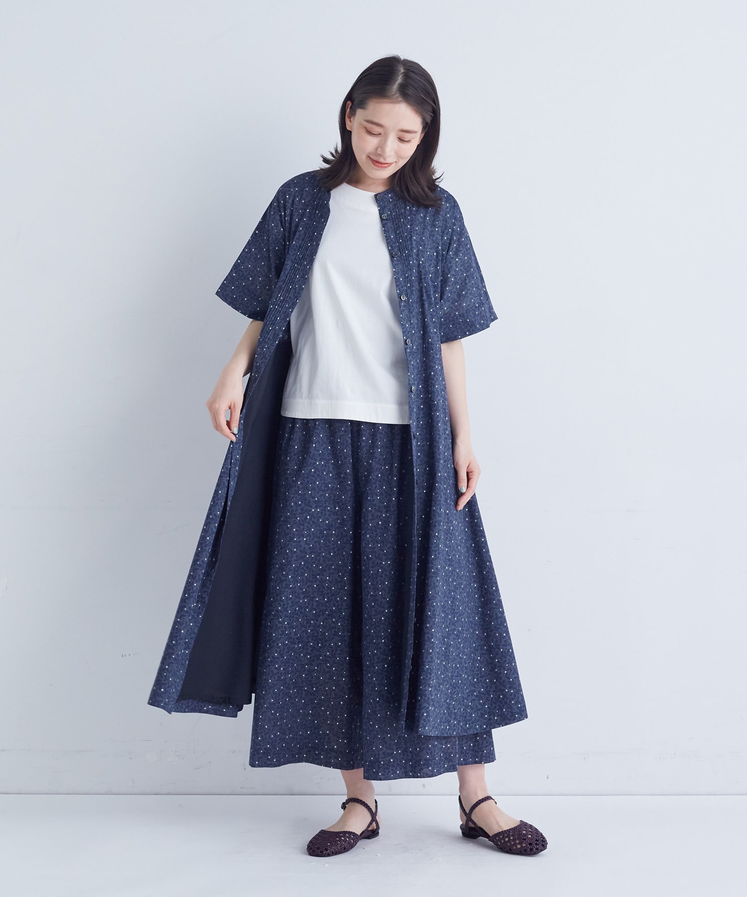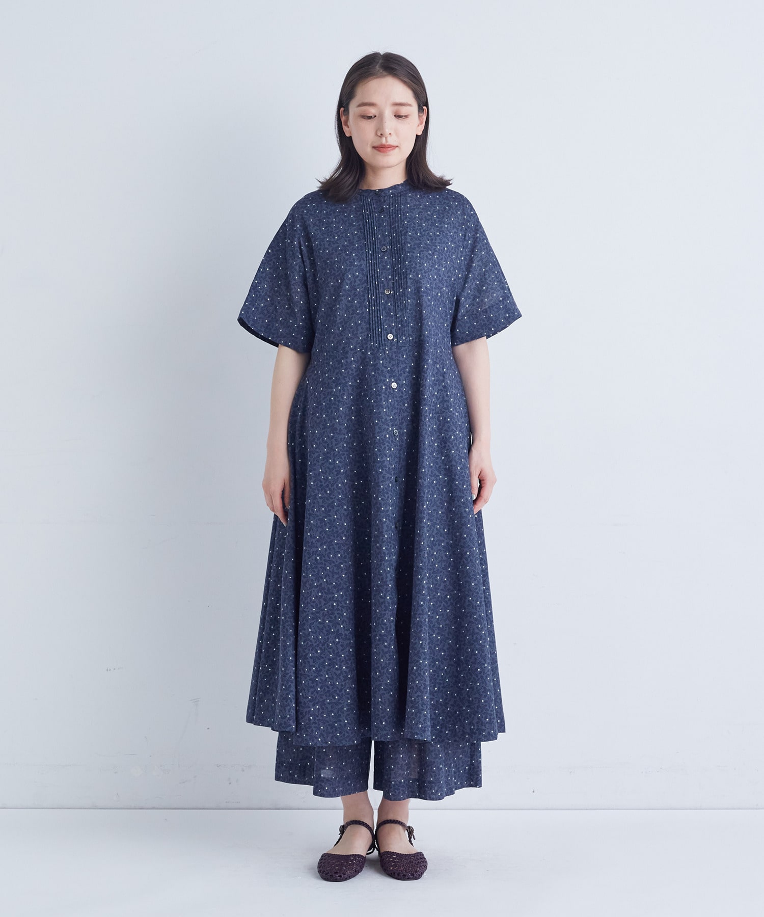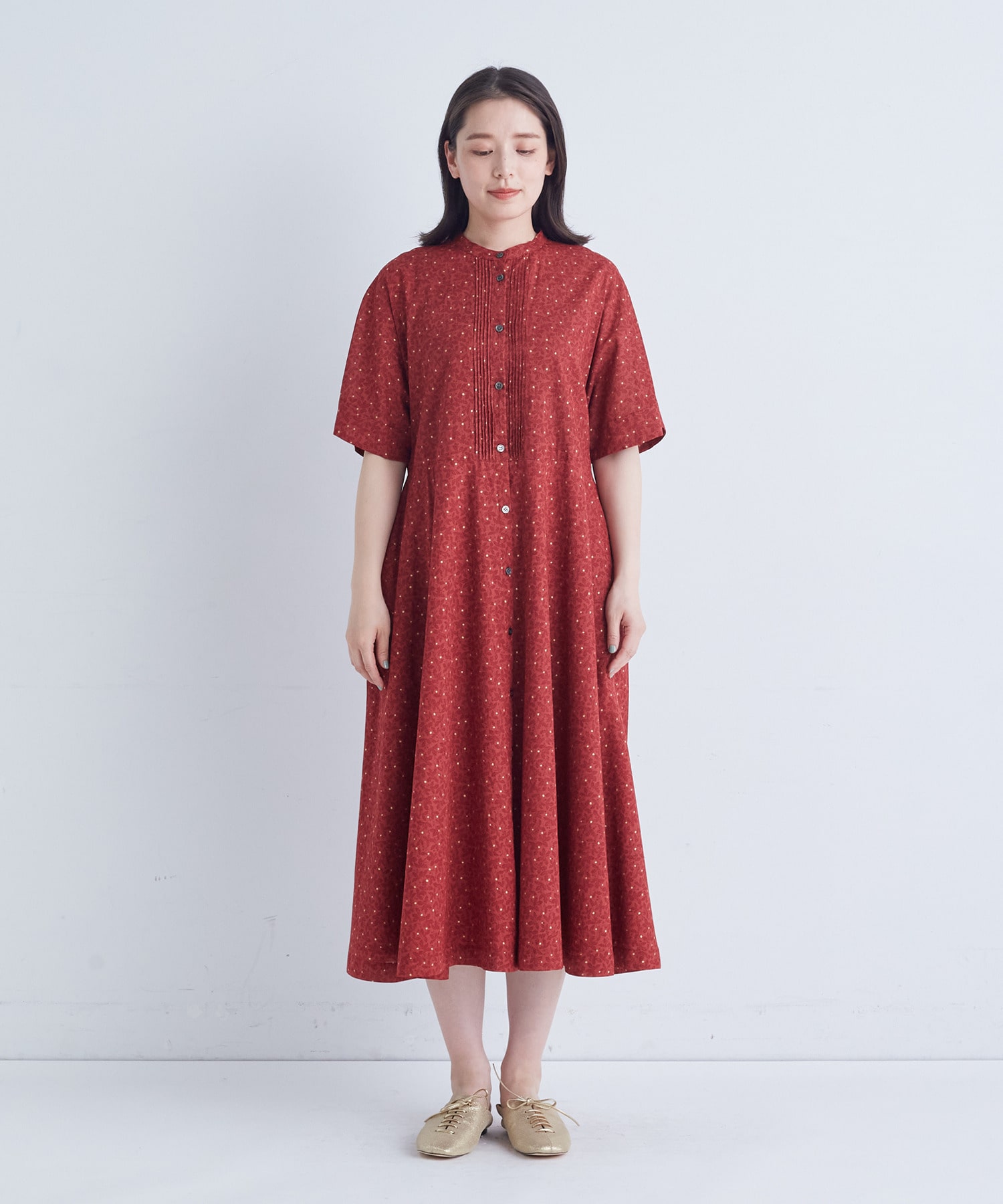 フロントのピンタックがポイントの前開きシャツワンピースです。