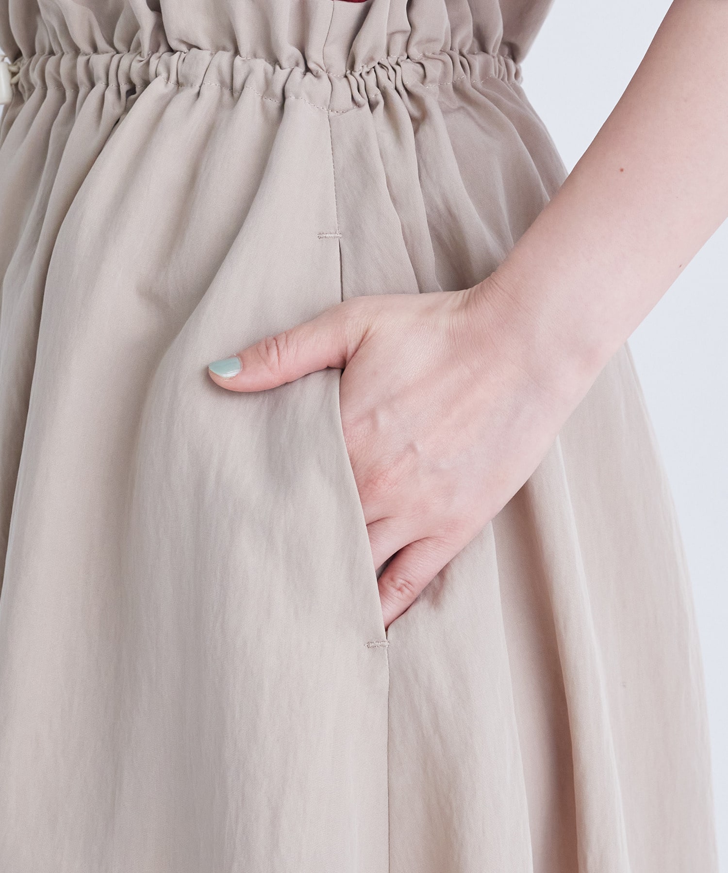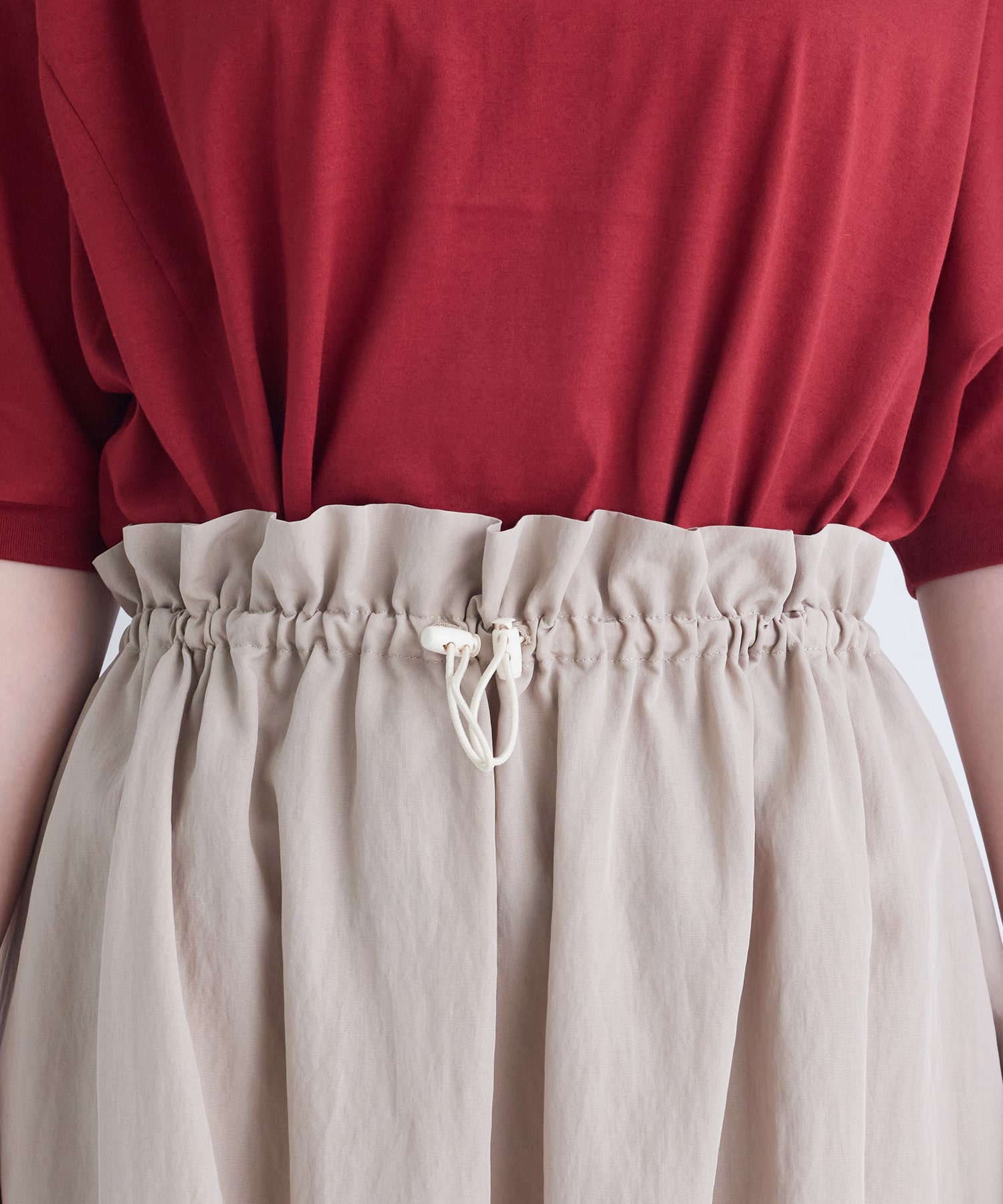 ウエストはゴムのイージー仕様ですがフロントにストッパーを付けて調整しやすく、ポイントにしました。